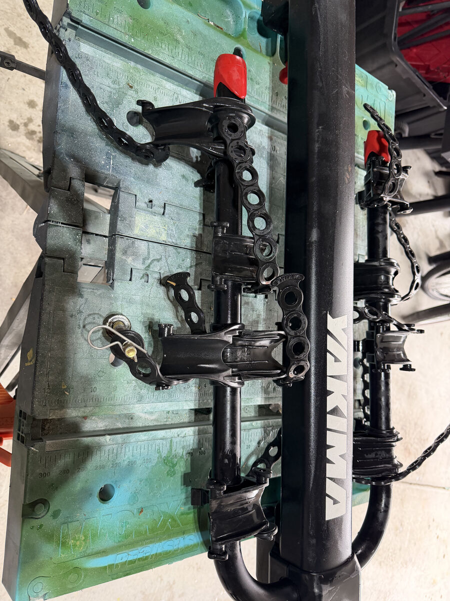ApplePayGreat for family trips, mountain biking weekends, or hauling bikes to the trailhead. Yakima is one of the most trusted names in bike racks, built to last.This Yakima hitch-mounted bike rack, holds up to 4 bikes. Fits standard 2” receiver hitches. Heavy-duty steel construction with sturdy rubber straps to keep bikes secure. The rack tilts down for easier access to the back of your vehicle. Used a few times but in excellent working shape. All straps included. A few scuffs from normal use, but nothing that affects performance. Includes pin for hitch. $150 of OBO
