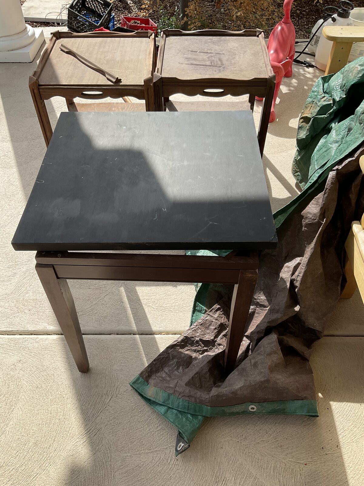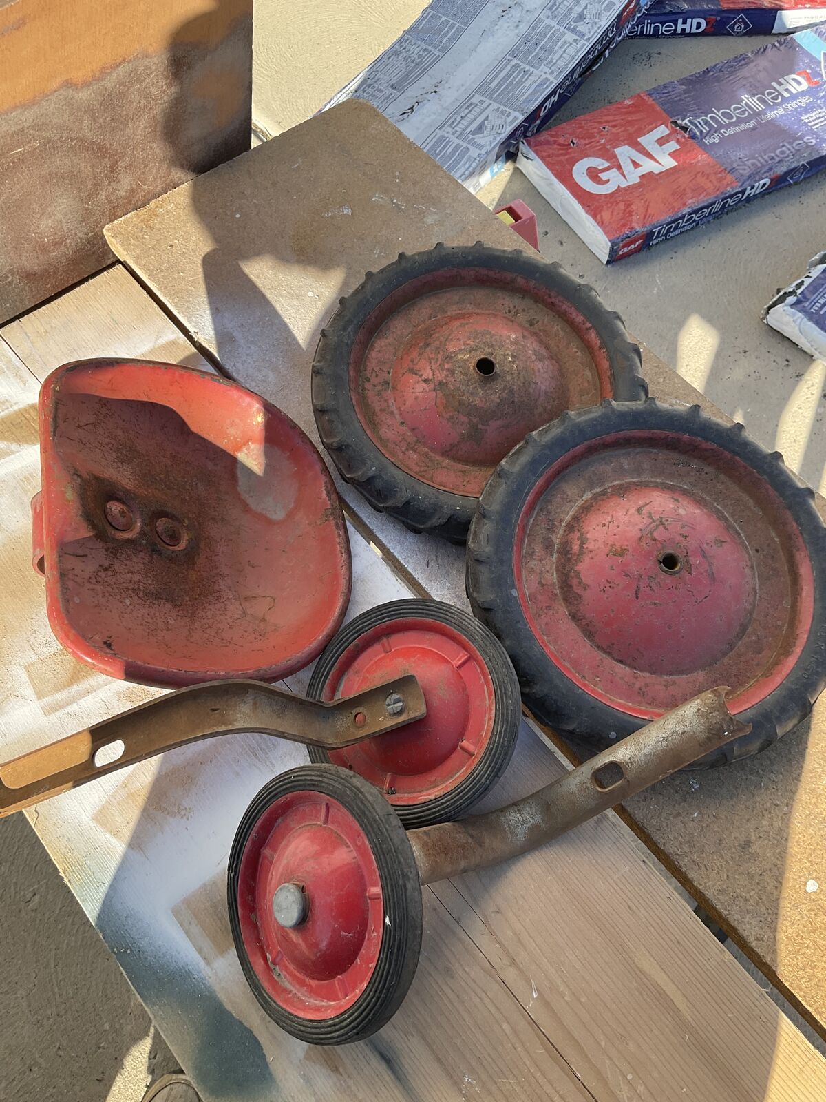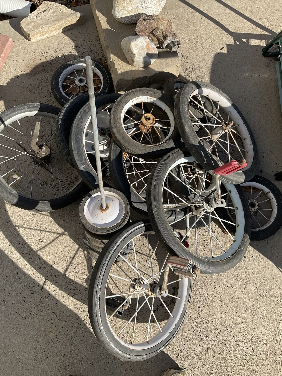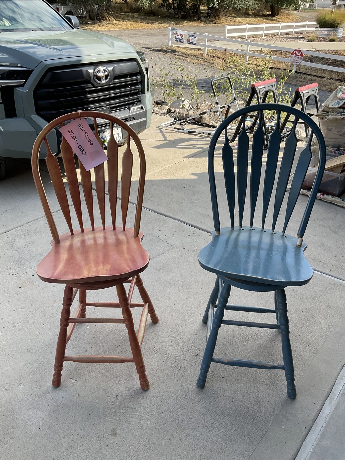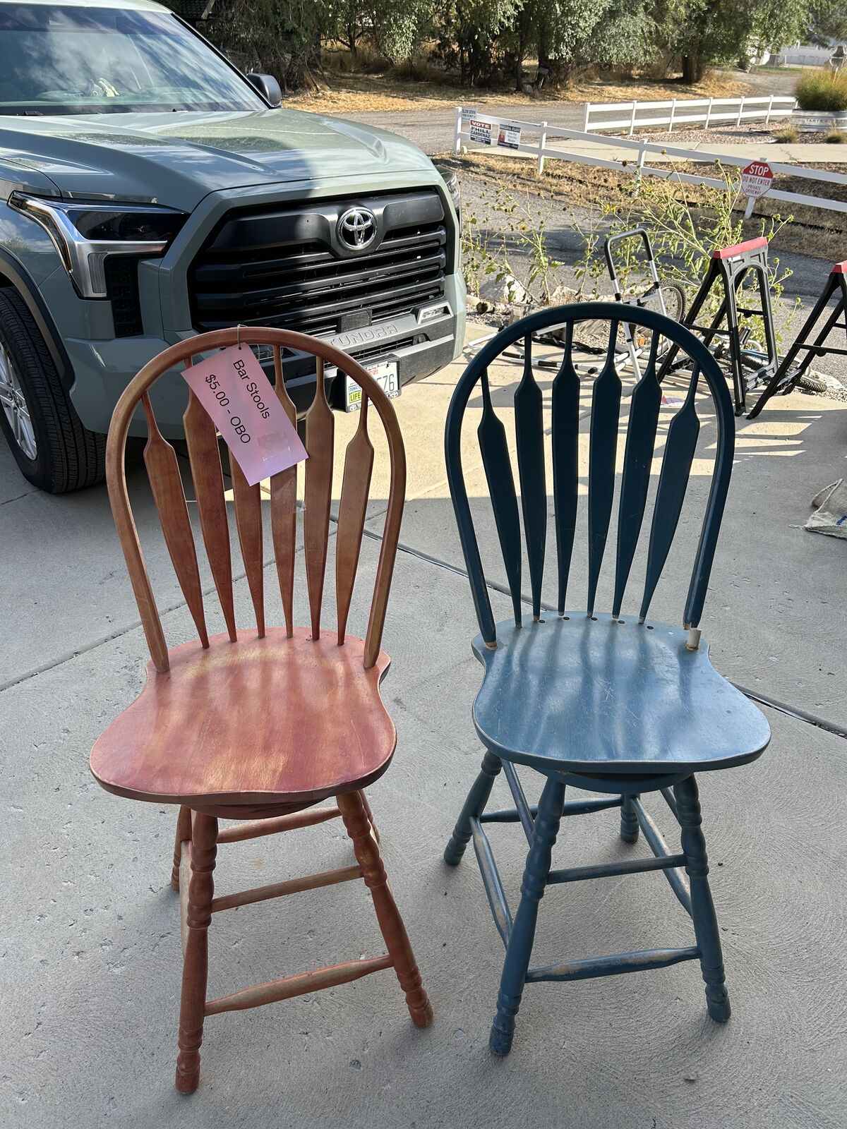 DIY-Flippers Dream -- misc wheels - $1.00 each // Pedal tractor wheels -$10.00 // lamps - $$1.00 each // wood bar stools - blue one needs work -$5.00 for both // lazy Susan table - $10.00 // end table set - $10.00 // shelves - $5.00 each // saddle stand -$15.00 -- reason offer on all or part. Cash / Text Message / Located in Sandy. Thanks for looking