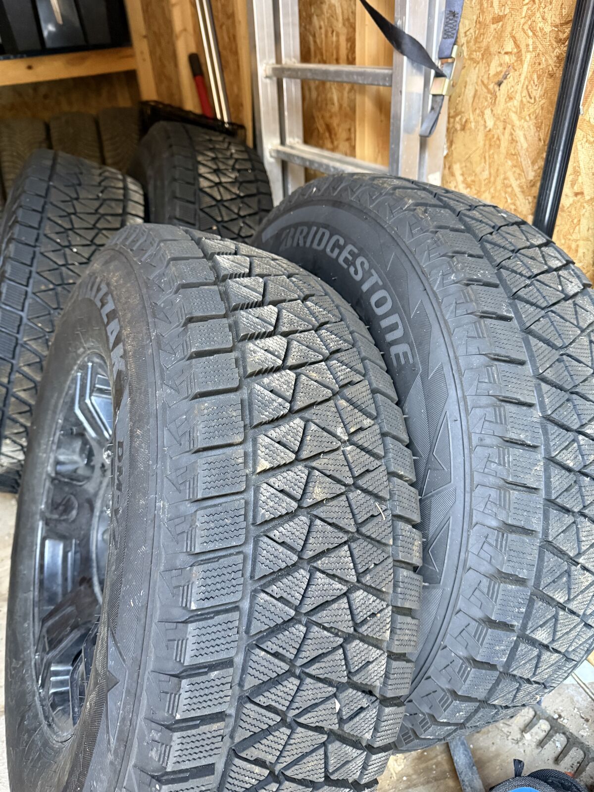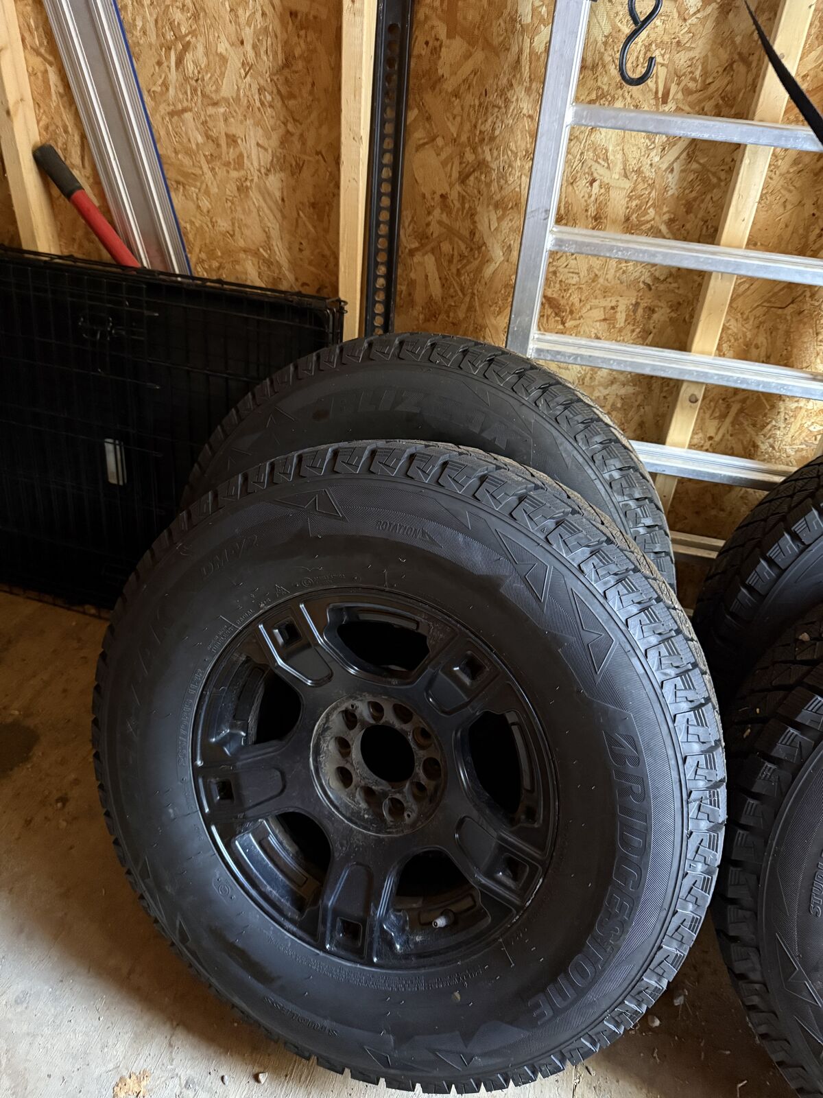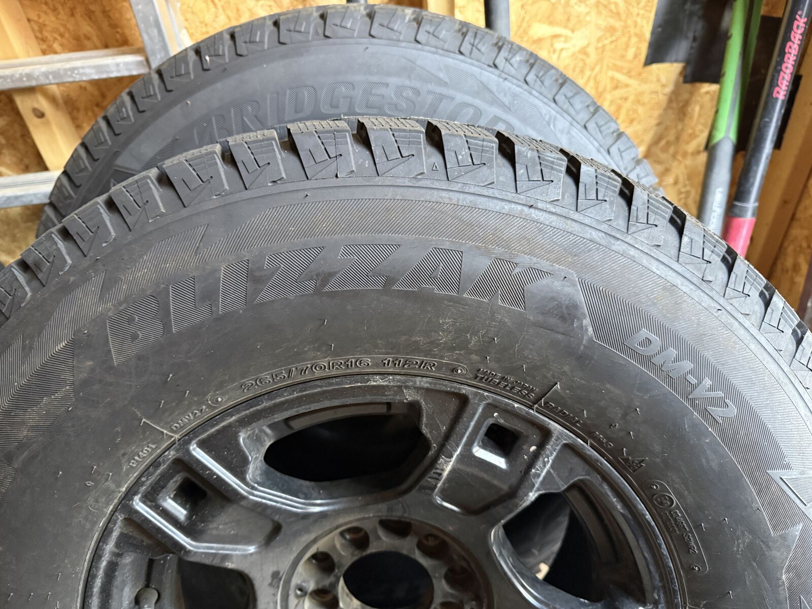 ZelleThese are the wheels and Blizzak winter/snow tires that came off my 2016 Jeep Wrangler (Willy edition). These tires were bought brand new and mounted December 2024, they got used for last winter and then I sold my jeep and they don’t fit my new car. Mounted on black rims, rims have some minor wear but still look good. Sold as set of four tires/wheels.