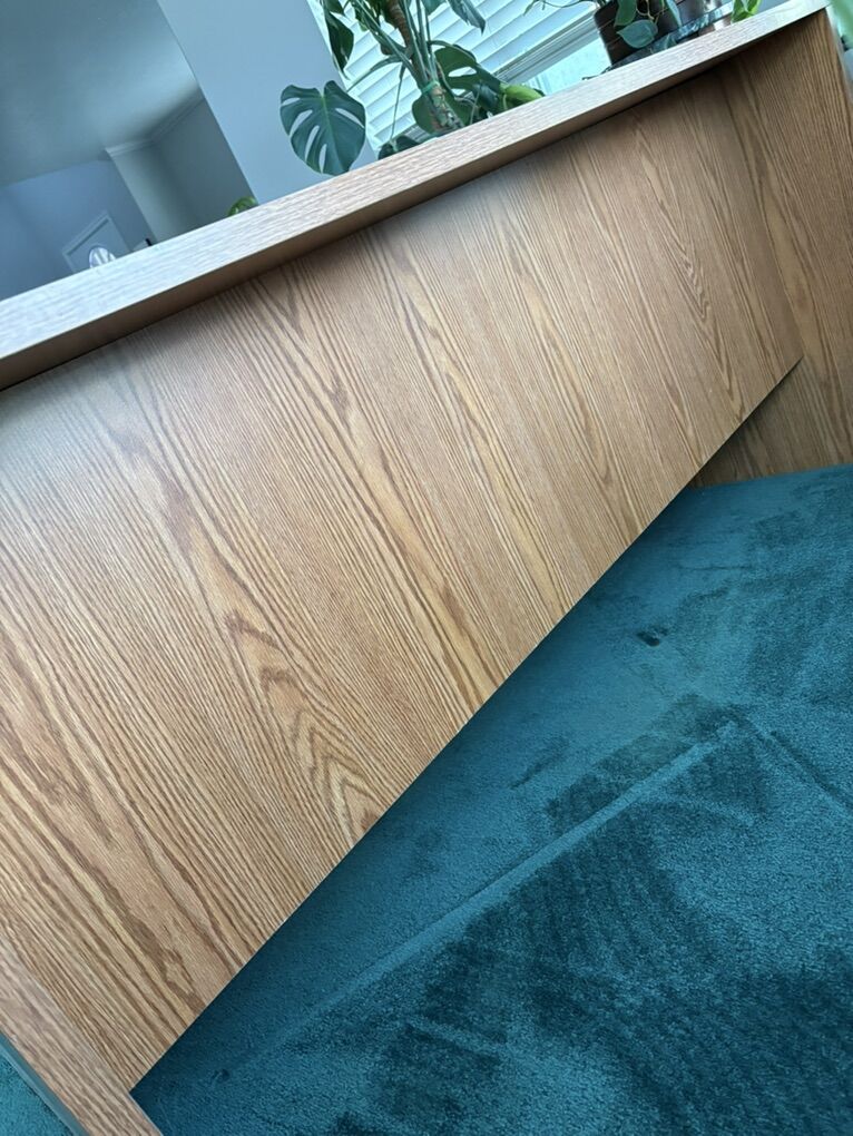 Really good condition. Just a couple raised spots from water from plants. It’s really heavy so bring muscle. 60” x 29 1/2” x 28 1/2
