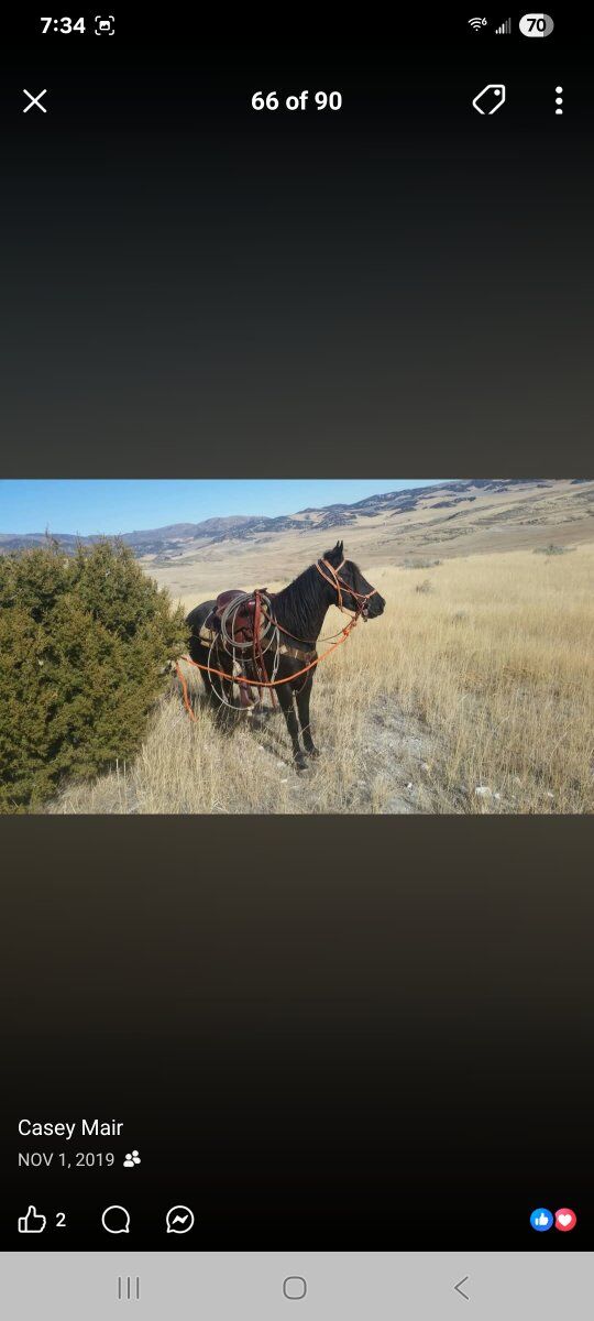 Venmo10yo Mare. she has packed out an elk. pushed cows. does good with dogs running around. she is a little hard to catch. does great if rode often. she recently had a filly a few months ago so she has had time off. need to find a new home for her ASAP. she has also had kids on her but would need a more experienced rider. price is 3,500 or best offer!