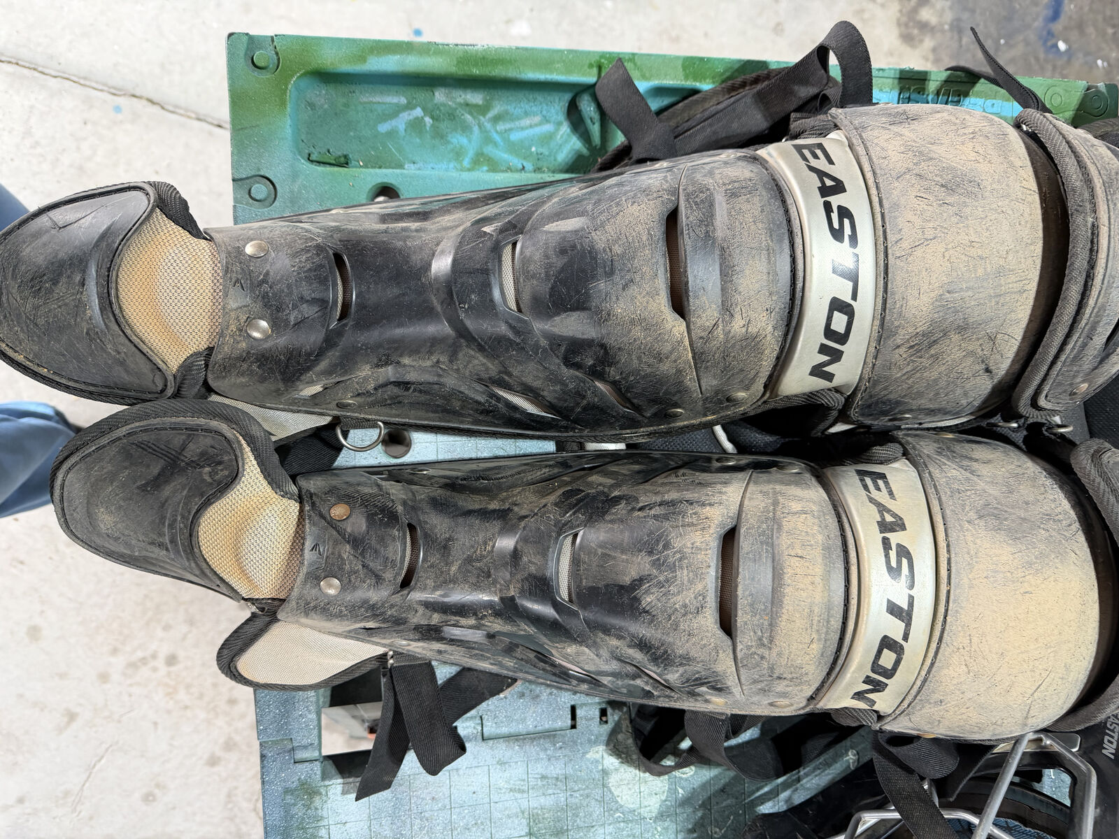 ZelleThe Easton Gametime Catcher's Set is designed for superior performance and protection. The leg guards come with a durable, reinforced, wide-knee design for enhanced fit and stability. Made from solid gloss ABS Thermoplastic, the catcher's helmet is durable, while the strategically placed vents increase airflow. The attached steel cage balances visibility and protection behind home plate. The chest protector is integrated with an impact-absorbing foam for optimum safety. Both the helmet and chest protector are certified to NOCSAE standards, ensuring top-notch quality. Make the most of your season with the Easton Gametime Catcher's Set.