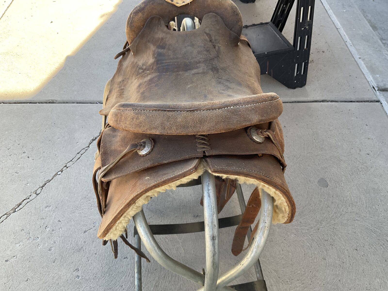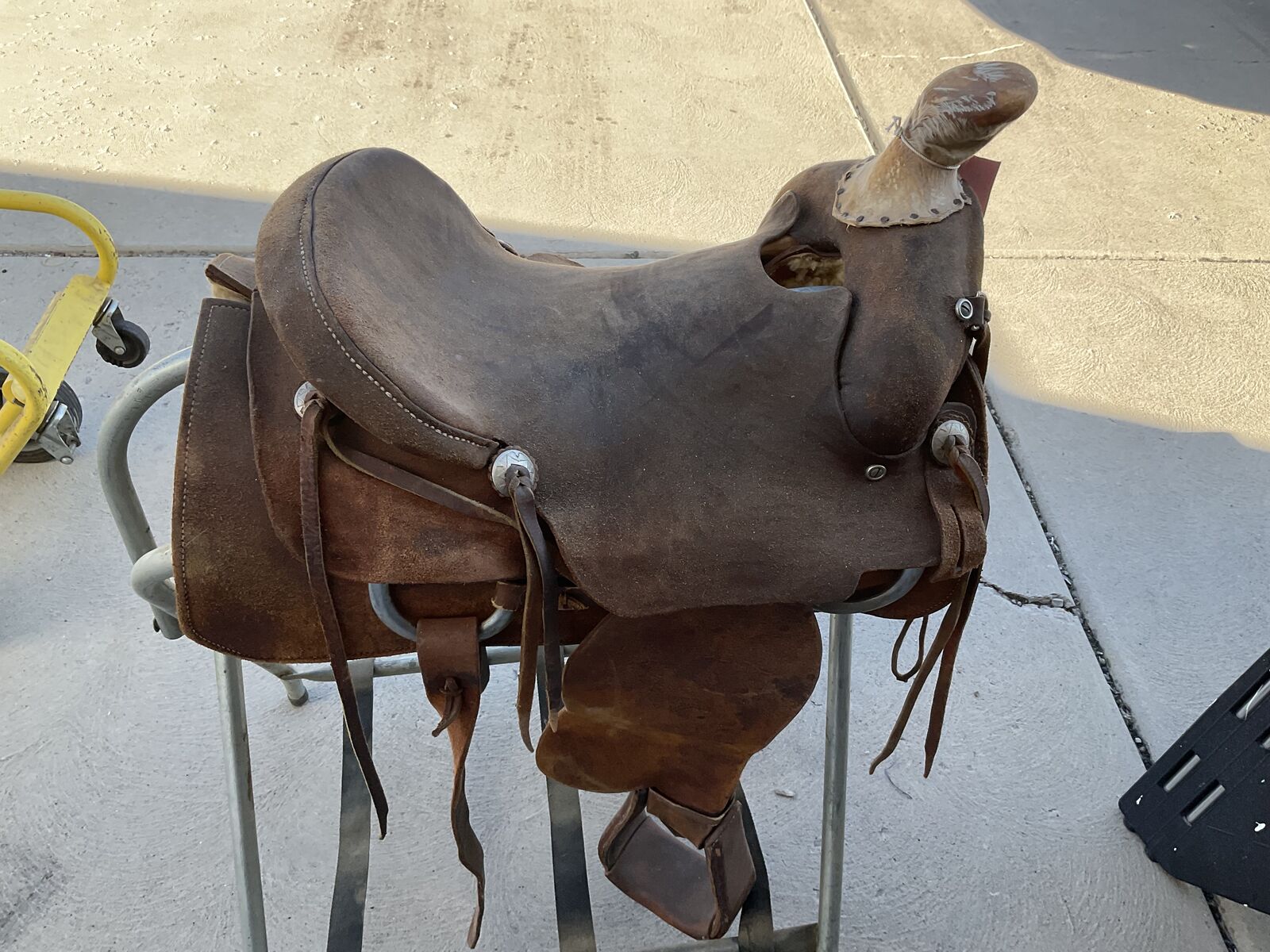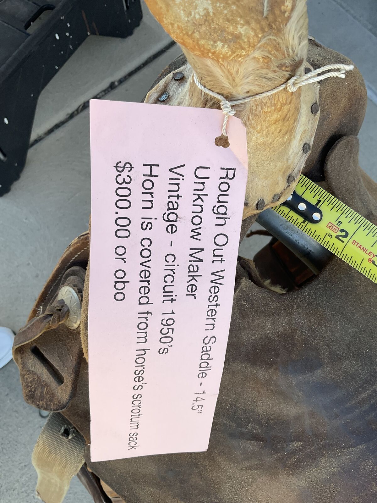 Orginal Western Saddle - Orginial (some have been replaced). Saddle horn is covered with a tanned horse scrotum. Perfect for your collectio, display or just to ride in. $300.00 - cash / text message/ located in Sandy. Happy Trails