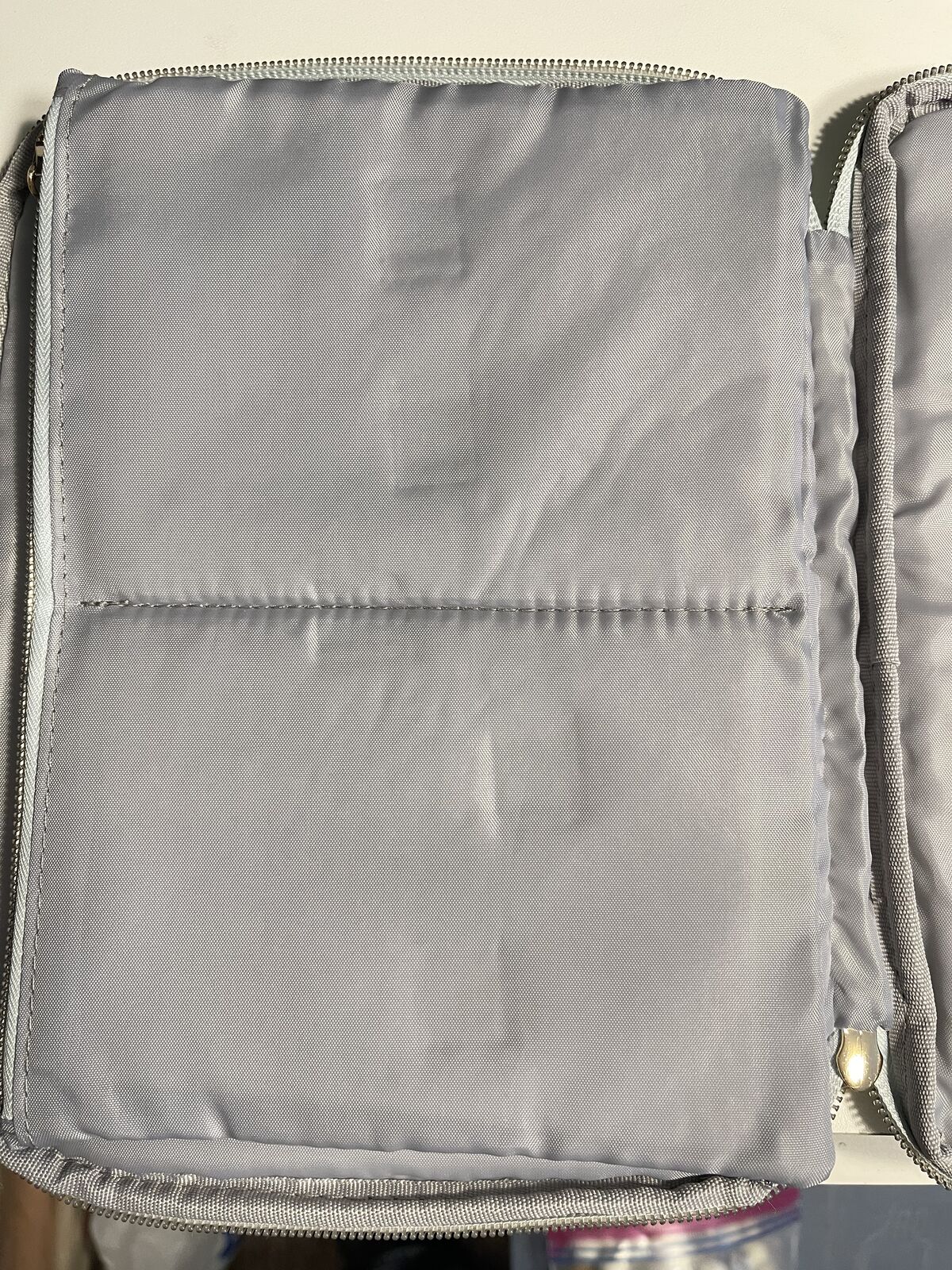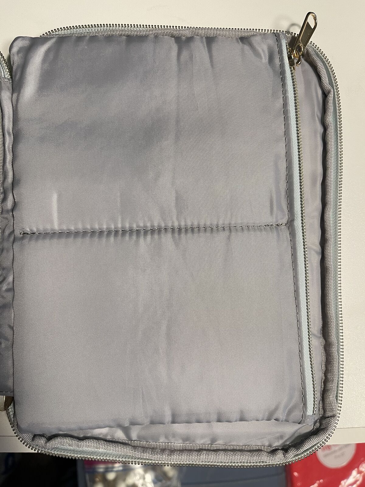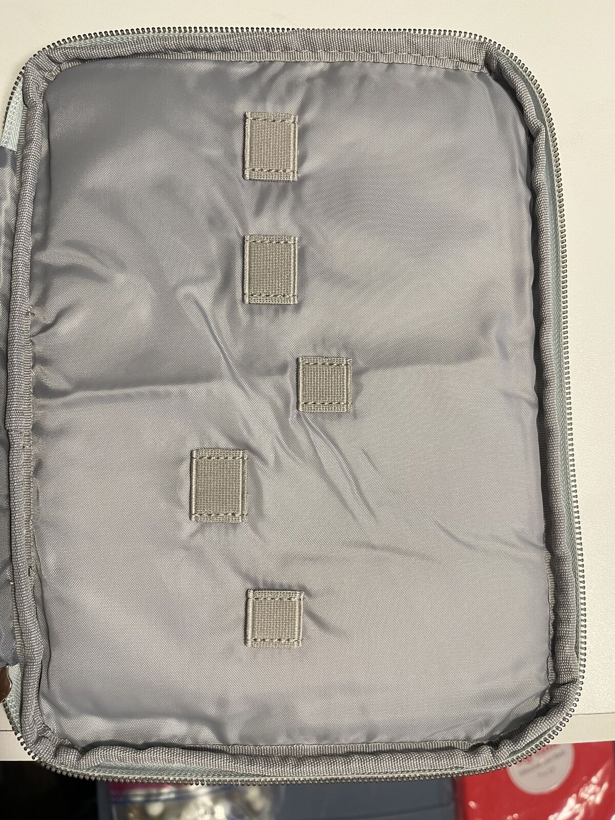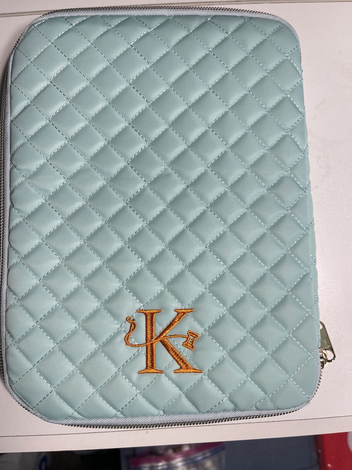 Teal "mint" colored, 10" x 8" quilt-padded cover, metal zipper closure