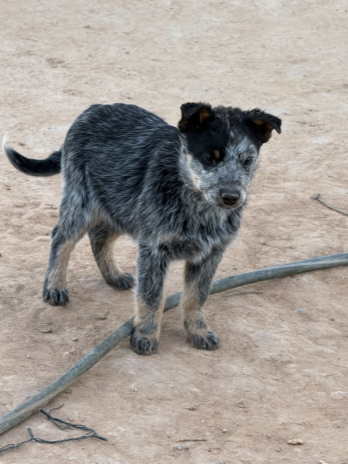 Zelle1 Male and 1 Female left. Outdoor puppies, very playful and fun puppies. Both are eating regular dry dog food. Puppies are 5 months. The male pup has one spot on the face and the female pup is the darker one with two dark spots on face. Text me about more details. Mother and Father are both Blue Heelers. Puppies are located at Montezuma Creek Utah. Serious Inquiries only. Thank you.