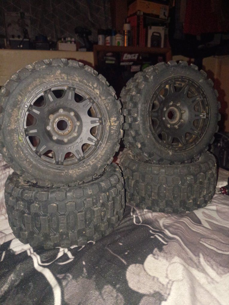 only ran the tires once for 5 minutes. they fit arrma kraton 8s. and acetyl proline tires