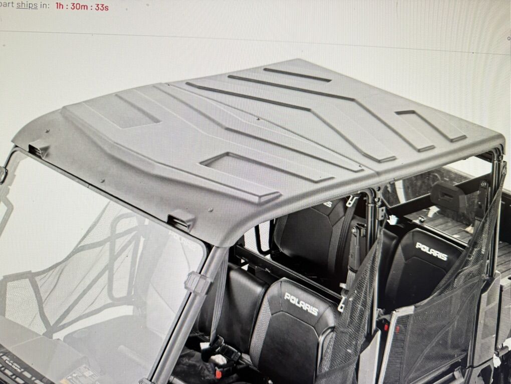 VenmoBrand new Hard Plastic roof for a Polaris Ranger XP 1000. Rough Country brand, Black, front and back pieces with support bars and hardware. Out of the box, but never installed or used. I purchased the wrong model for my UTV. Sells for $359 online