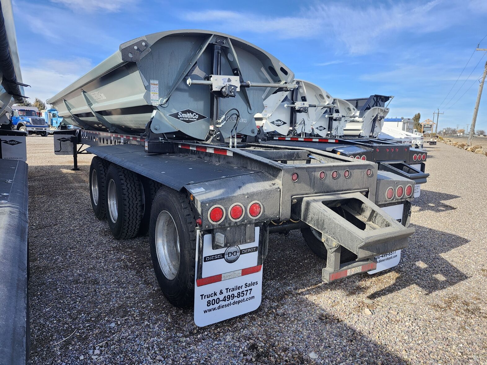 Made in the USA!! 47' trailer with 36' tub, 32 cubic yard capacity, 79" 3rd axle spacing, 18" Kingpin setting, 25K Axles, 2 speed landing gear, Electric roll over tarp, 1/4" AR450 hardened steel tub, Tarp lock-out switch, Push block, Hydraulic valve on trailer, 11R22.5 tires, Non-steerable 3rd lift axle with duals, Requires truck wet kit with minimum 10 gal hydraulic reservoir and 25-30 GPM hydraulic pump, In stock!! (Price + FET and sales tax)