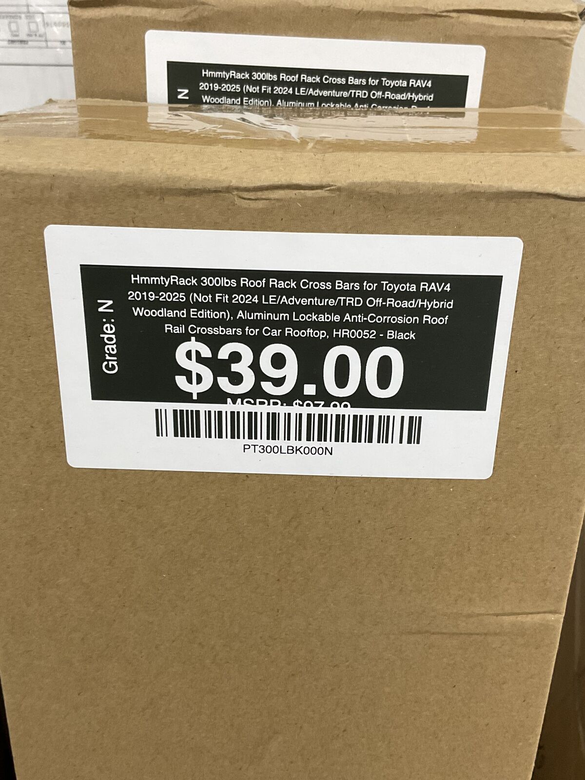Heavy-duty aluminum roof rack cross bars rated for up to 300 lbs of cargo, designed to fit 2019–2025 Toyota RAV4 models with side rails. Includes anti-theft locks for security and versatility to carry cargo racks, rooftop luggage carriers, kayaks, canoes, bicycles, and more. Durable construction and practical design make them great for road trips, outdoor gear, and everyday hauling needs.