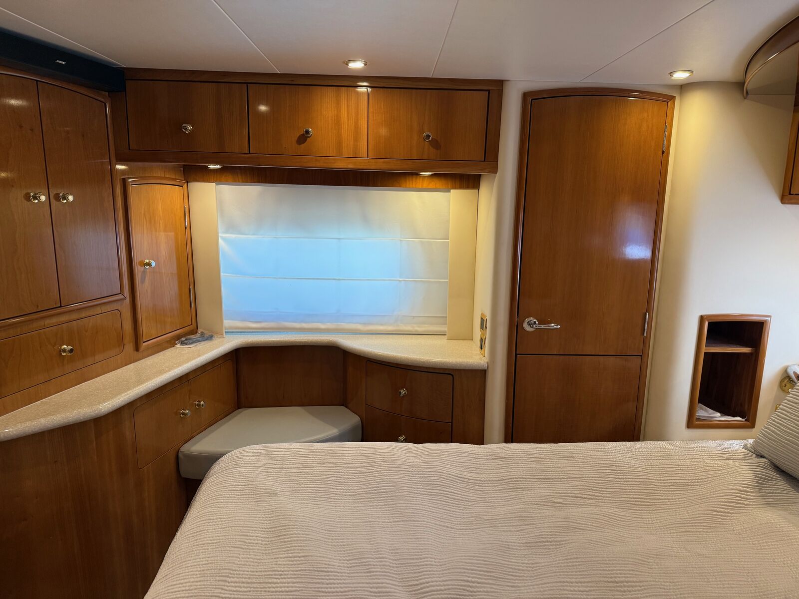 · Queen island bed in Master w/(4) cedar-lined hanging lockers & VacuFlush head w/separate shower & sink