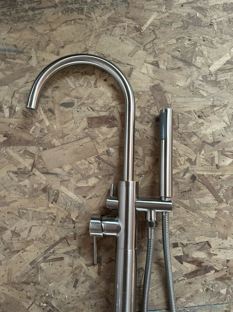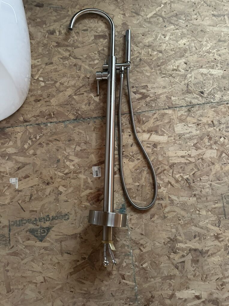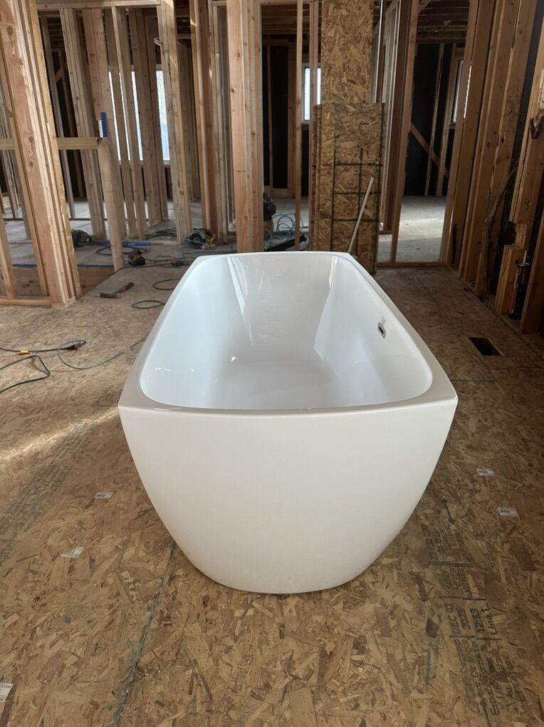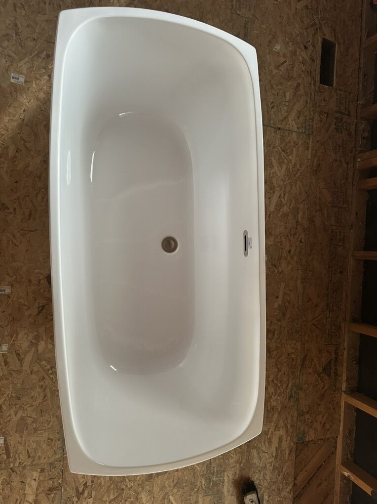 VenmoBirkett 56 in. Freestanding Flatbottom Soaking Bathtub with Center Drain in White