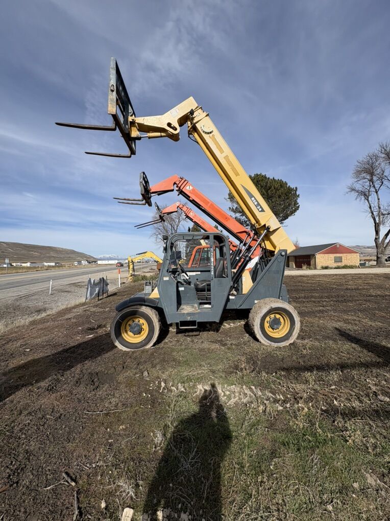 These are a very cool mini 6000 pound Telehandler. They only weigh around 17,000 pounds so they’re much easier to transport but still have a 34 foot reach.