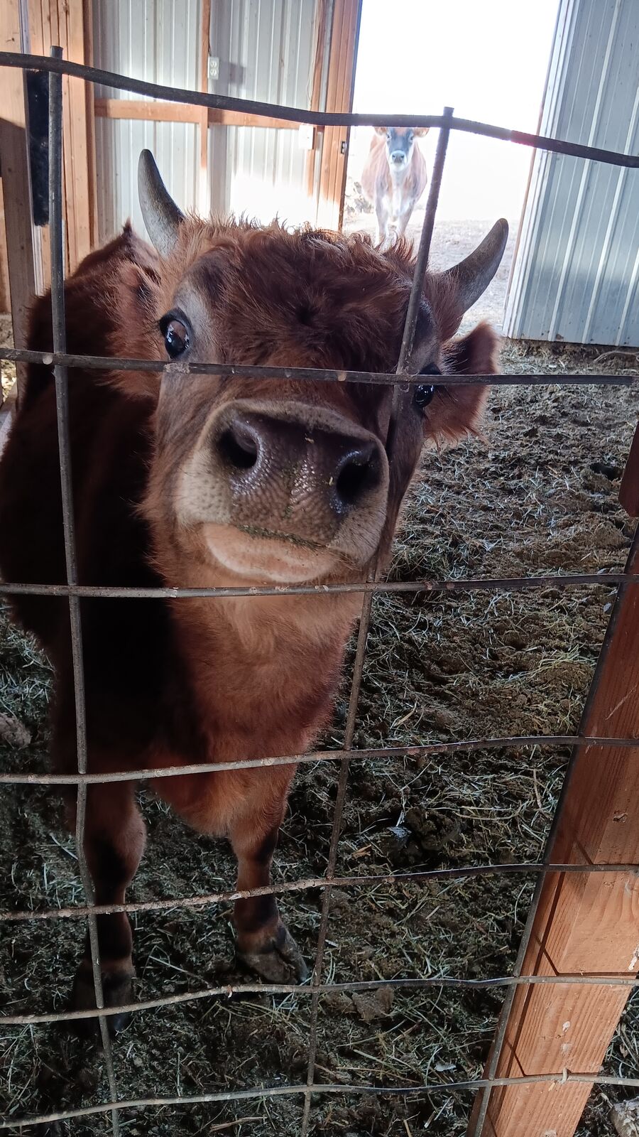 We have two Jersey cows. A miniature Jersey Bull he has horns and the other is average size Jersey Heifer. Both are just over a year old. They are un-related and have been penned together. The protein genetics are unknown at this time.