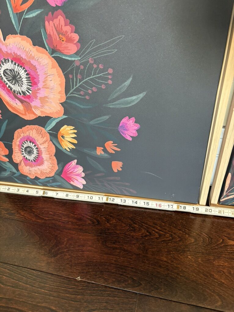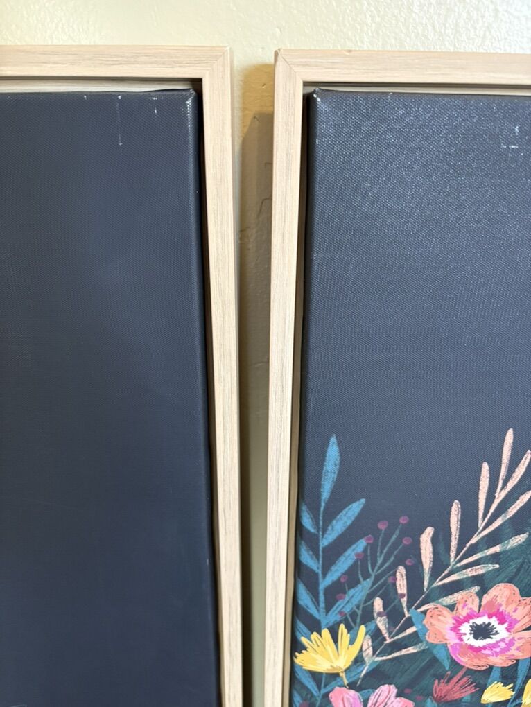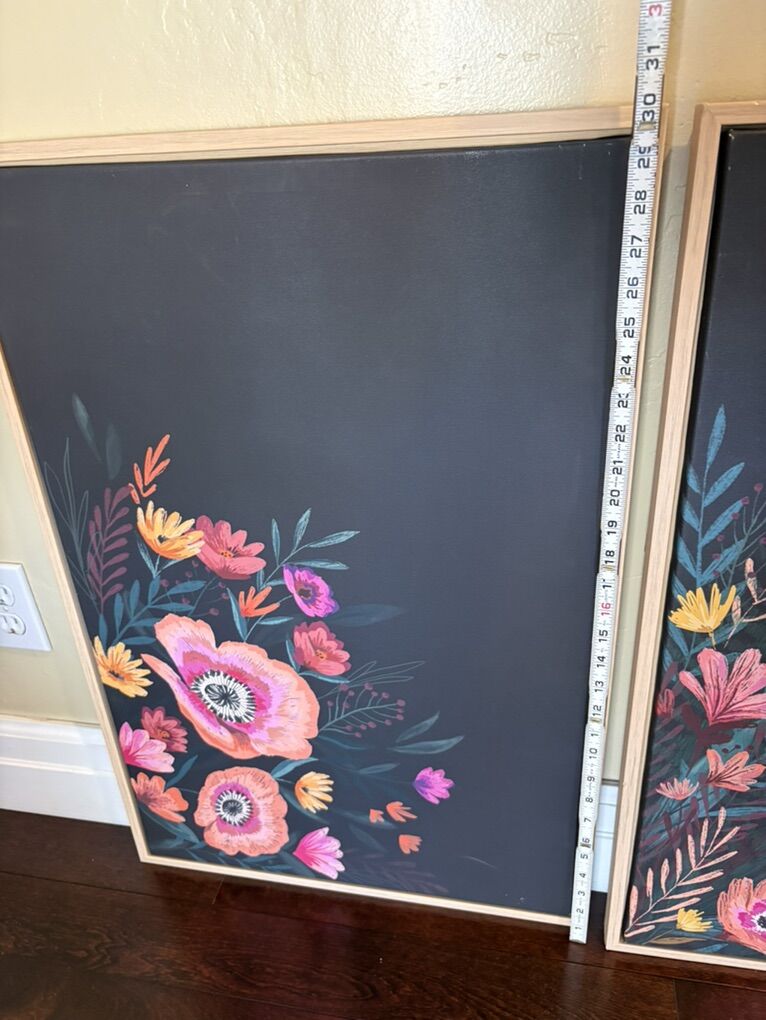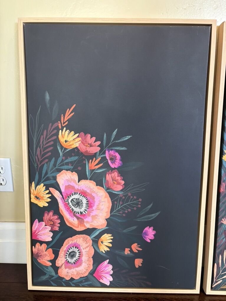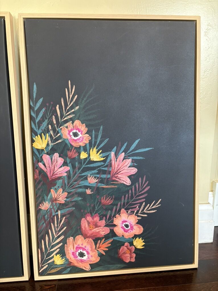 Preloved Update your room Has a chalkboard like background with bright flowers Ready to hang Measurements in photos Set of two