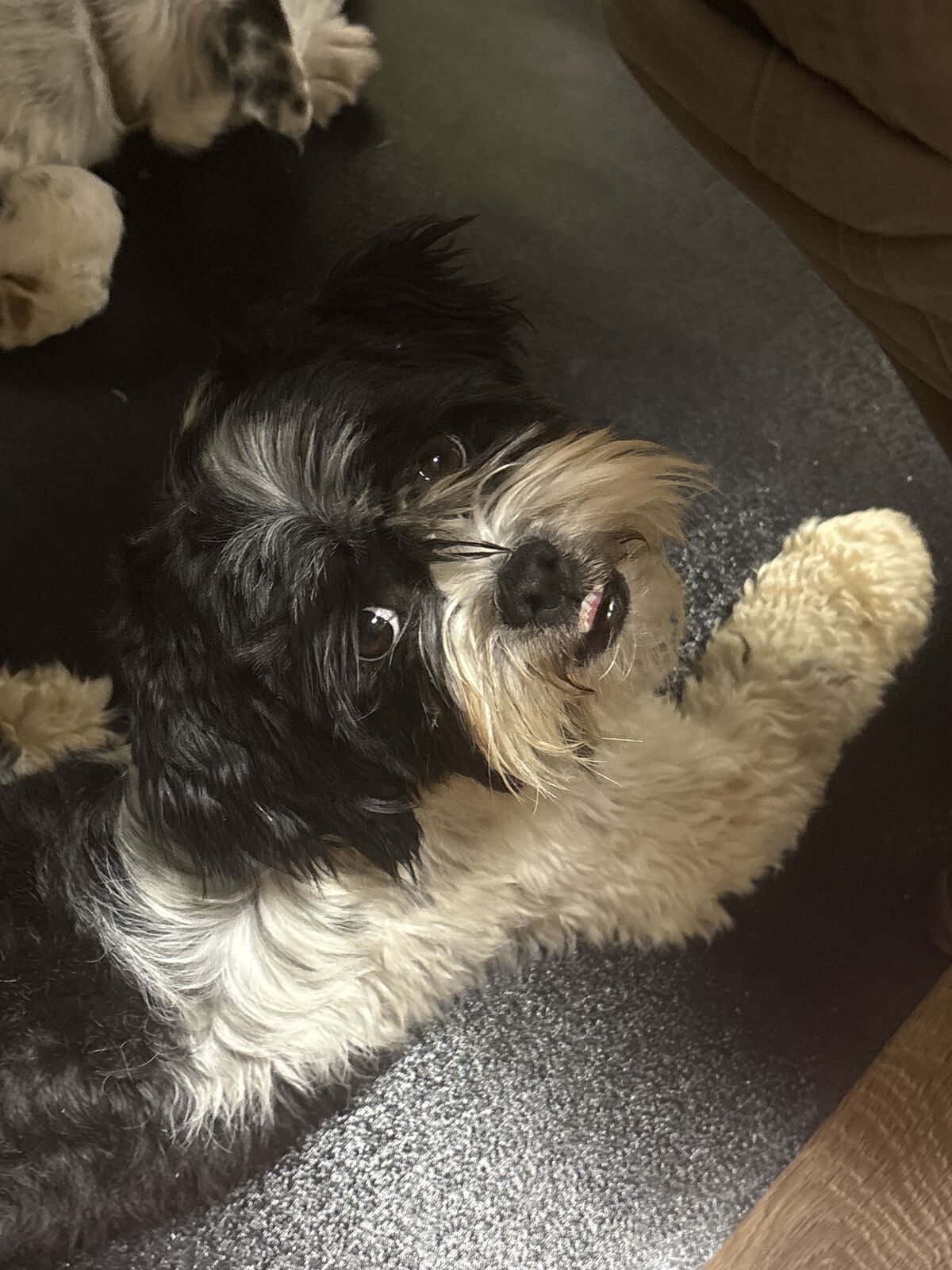 Potty trained male shitzu. good with other dogs, cats and kids of all ages.