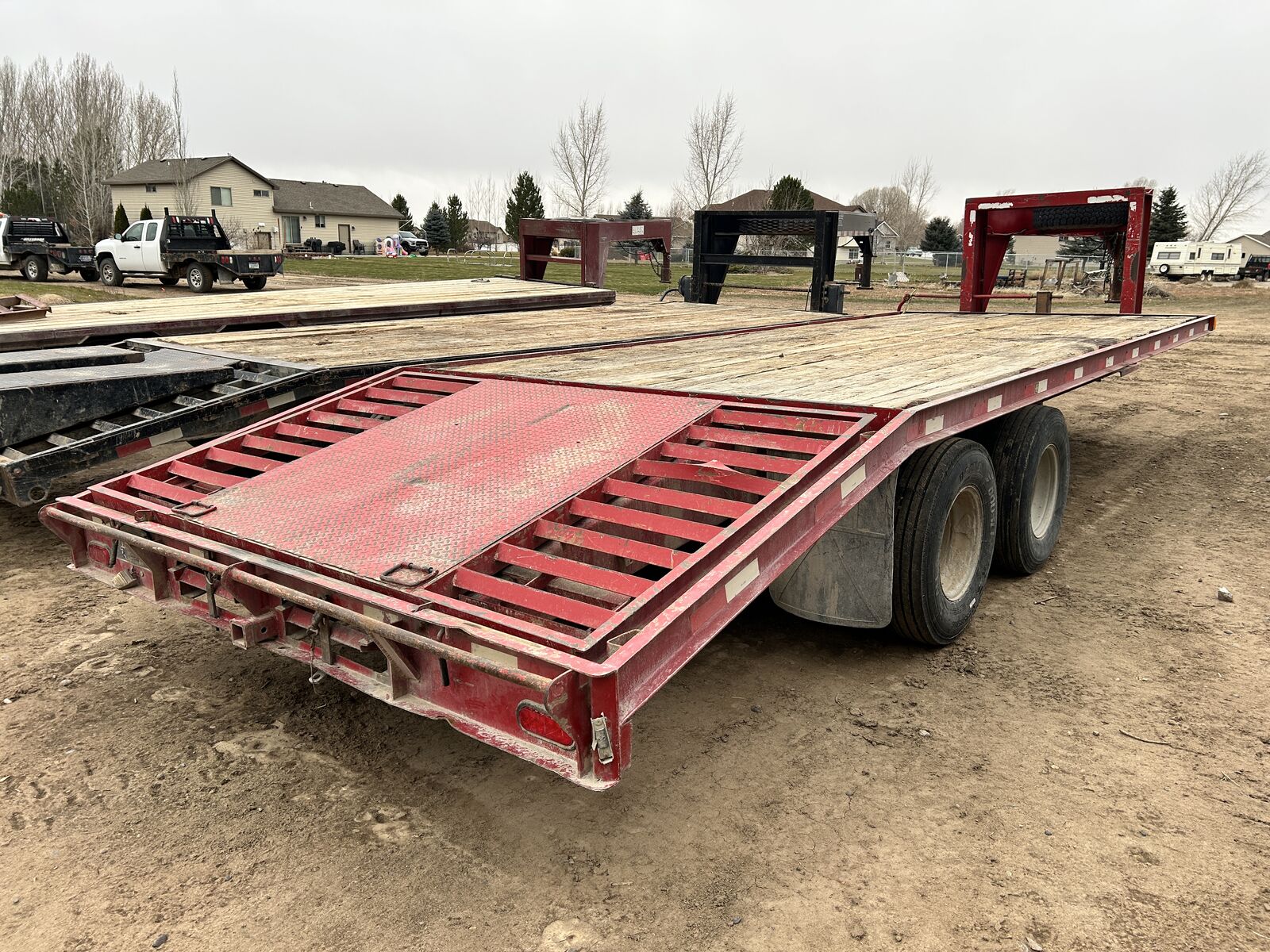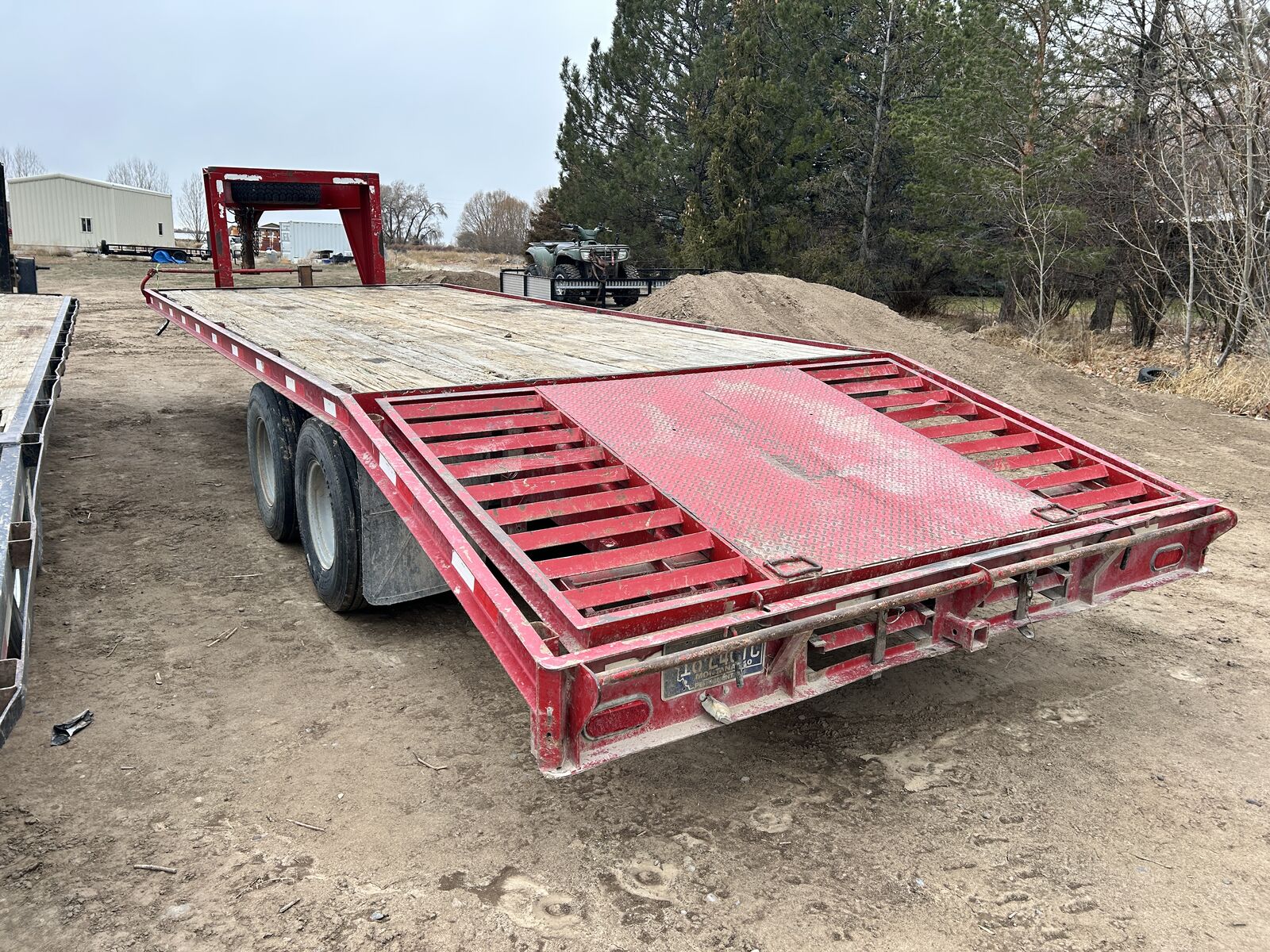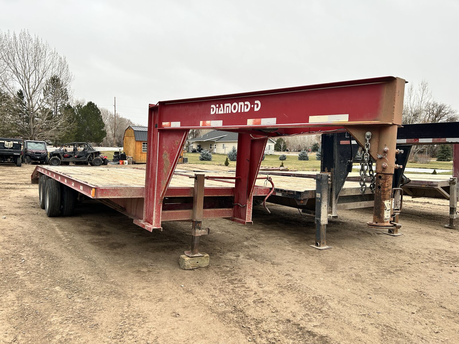 2001 Diamond D goose neck flatbed trailer, 20+4’ deck, has a 4’ pop up making a 24’ deck, comes with HD equipment ramps as well. Dual 10K axles, Ranch owned so it’s not perfect but it pulls good and the deck is in decent shape. Tires and brakes are good. All the lights work.