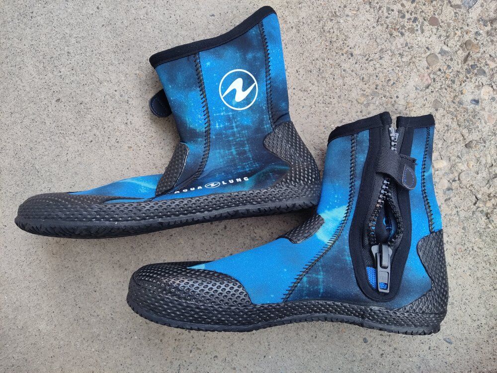 Men's Aqua Lung Men's Diving or wet suit. Looks great, no tears or damage, zipper works. Also come with boots and a full face mask. Sizes are in the photos. -Aqua Lung Superzip diving boots Galaxy Blu color. $40\