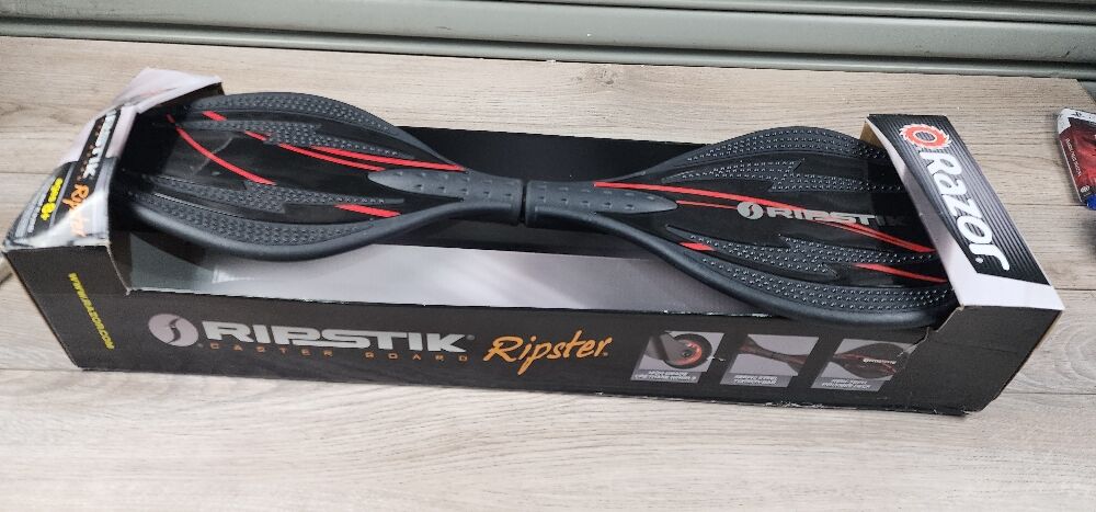The Razor RipStik Ripster’s lightweight and compact size is perfect for riders with a narrower stance Inclined,360-degree caster trucks and concave deck provide a one-of-a-kind, twist-and-carve ride Slip-resistant deck platforms deliver maximum grip High-grade urethane wheels with ABEC-5 bearings deliver a smooth ride Deck: High-tech polymer with removable deck plates Platform: Slip-resistant, concave deck Torsion Bar: Rubber-padded steel Wheels: High-grade urethane on inclined, 360-degree casters Age: 8+ Max Rider Weight: 175 lb (79 kg) No Assembly Required Assembled Product Dimensions: 27" x 9" x 4.5" (680 mm x 222 mm x 120 mm) Product Weight: 4.5 lb (2.0 kg)