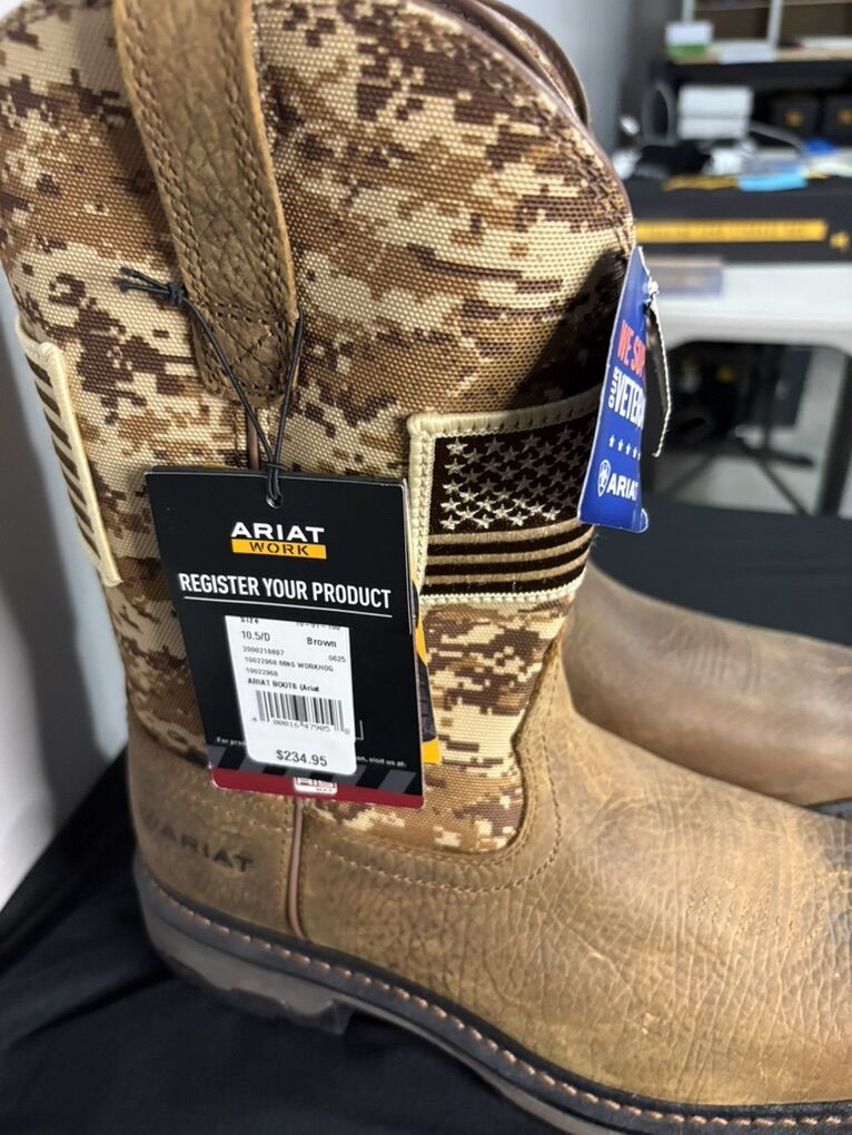 ZelleAriat work boots size 10.5, steel toe. Brand new never worn. Retail $234.