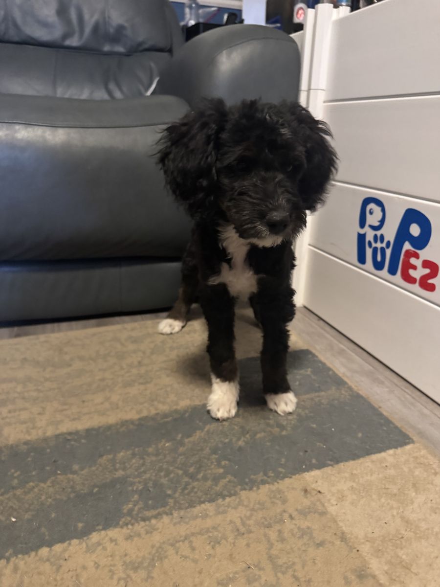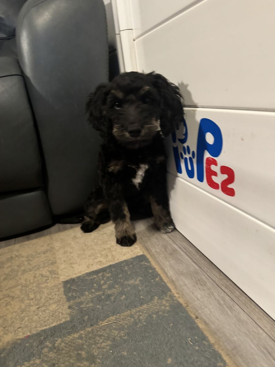 ApplePayBernedoodle F1B puppies. Born December 13th. Mom is 25lbs. and dad is 40lbs. Both of these will be close to mom’s size. They are already doing very well with potty training, are well socialized and are great around other animals. I have chickens and they are great with them. Also working on kennel training. A male and female left. Male has the white paws. I am located in Roosevelt.