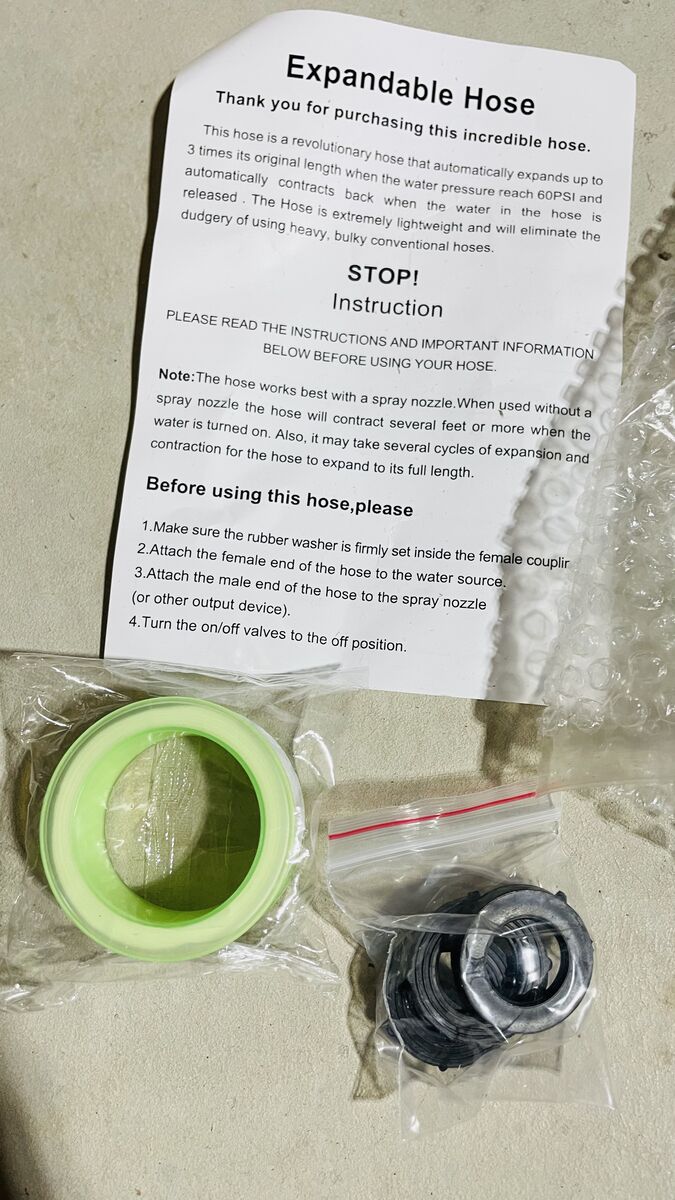 Zelle2.5X Expandable Garden HoseOur flexible garden hose can expand up to 2.5 times its original length (150 feet) within seconds of water pressure application,it reverts to a compact size just as quickly when the water recedes, ensuring convenient storage and maximizing space efficiency.Pro tip: Drain the water from the hose when not in use by turn off the faucet and opening nozzle for a few seconds,afterward,store it in a cool and dry place.