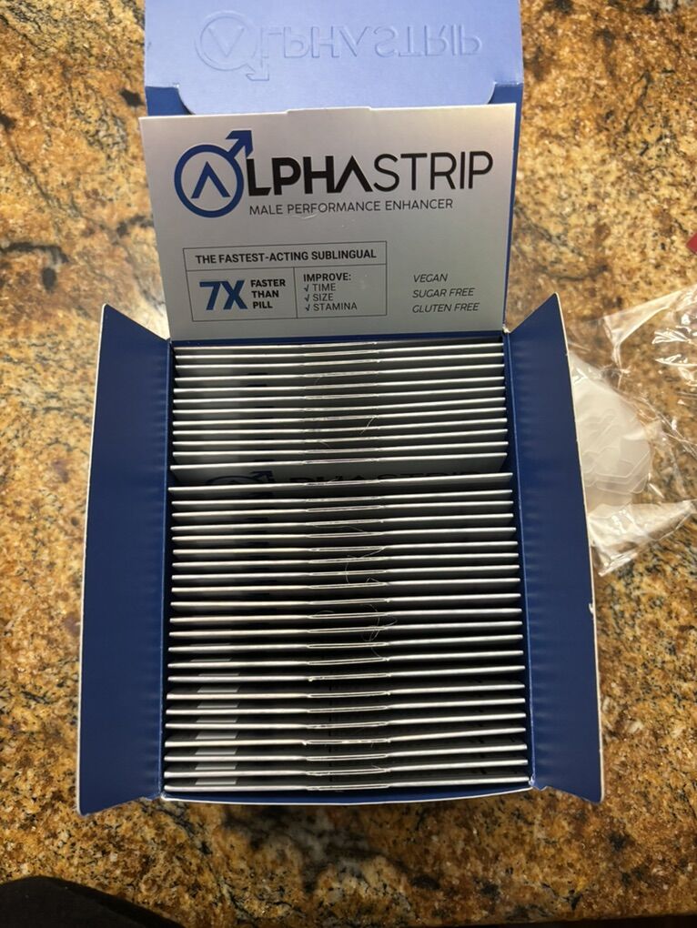 CashAppAlphastrip 7X Men’s enhancement supplement strips Each box contains 36 individually packaged strip $200 OBO per box Retails for $299 per box