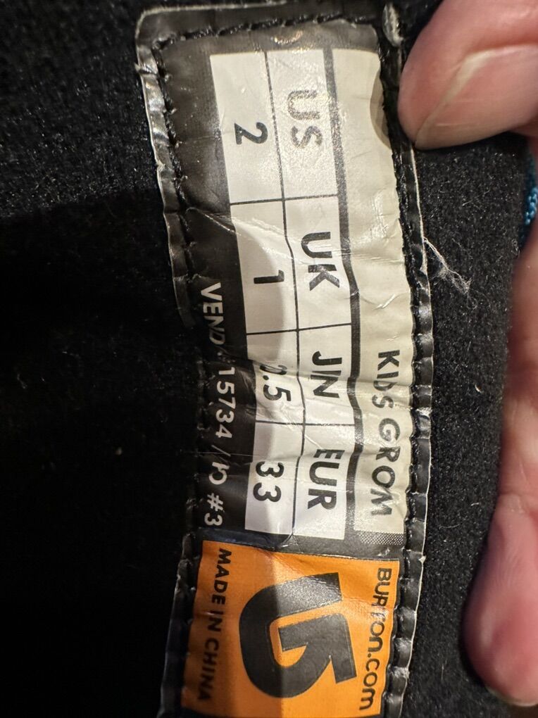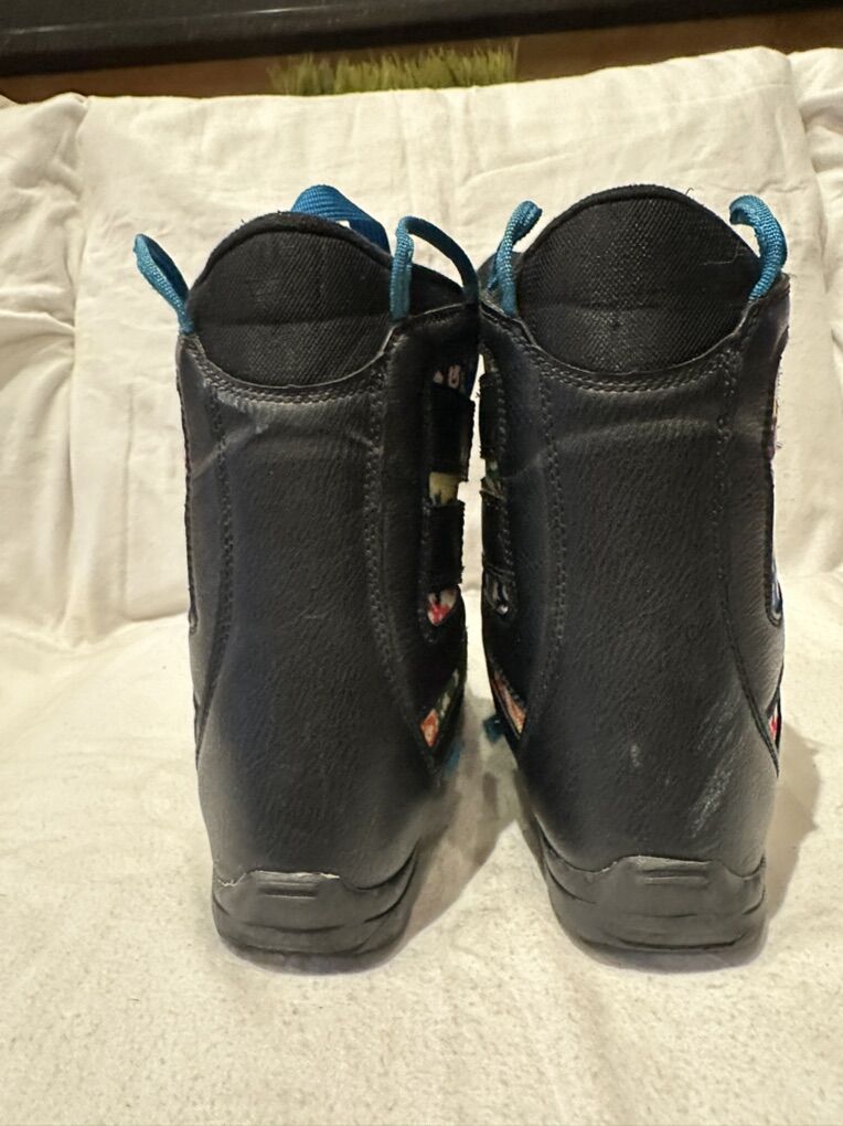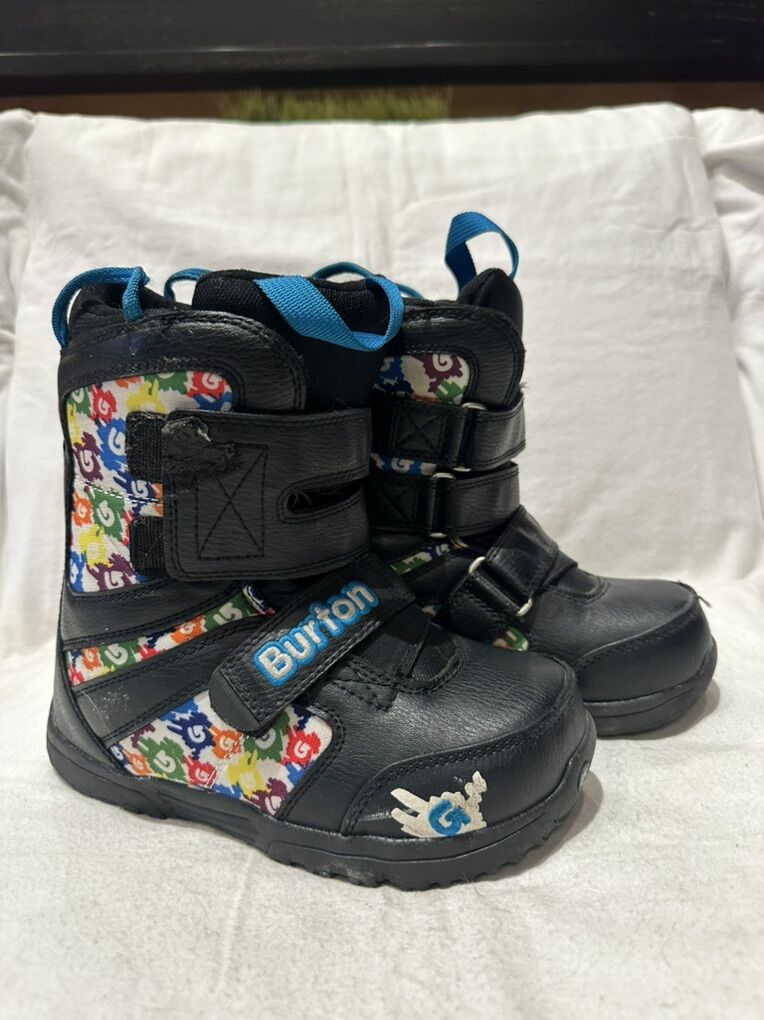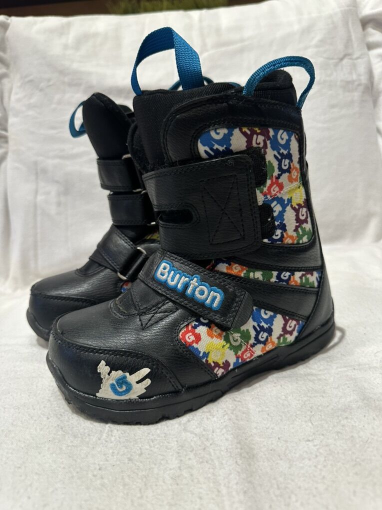 Burton youth size 2 black with colorful print, Velcro closures kids Grom snowboard boots. These are in good condition, see photos for details. I take cash or Venmo, but cash is preferred. Text is best. 801-201-4446. Check out my other ads for additional sizes and styles.