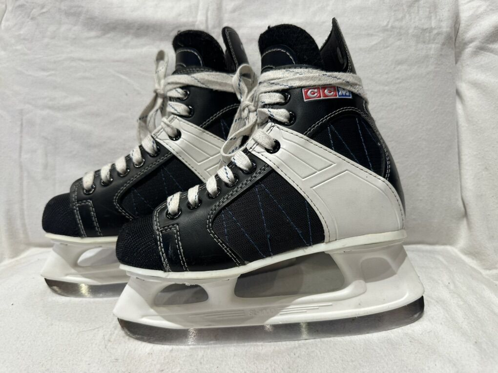 CCM power line 90 skate size 4 black and white hockey skates with SL-1000 blades. These are in great condition, see photos for details. I take cash for Venmo, but cash is preferred. Text is Beth. 801-201-4446. Check out my other ads for additional sizes and styles.