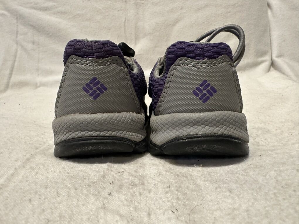 Columbia toddler size 8 purple with gray trim, hiking shoes with elastic laces and a toggle at the top. These are in lightly used condition, see photos for details. I take cash or Venmo, but cash is preferred. Text is best. 801-201-4446. Check out my other ads for additional sizes and styles.