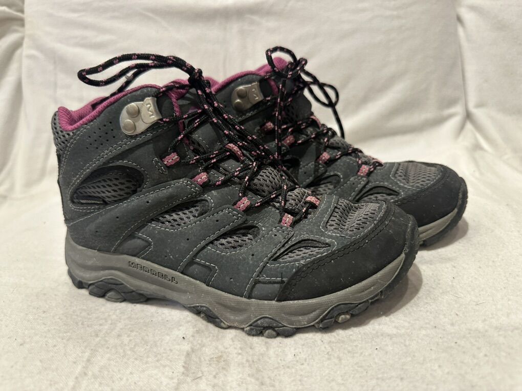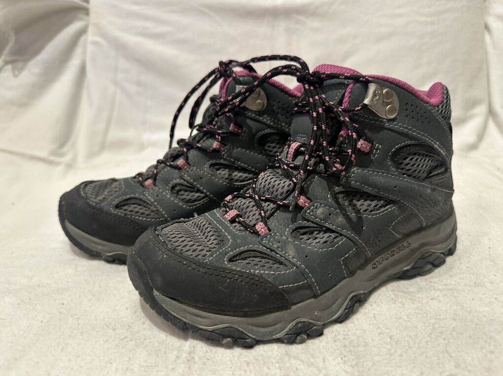Merrell youth size 3, gray with plum trim waterproof mid hiking boots. These are in good condition, see photos for details. I take cash of Venmo, but cash is preferred. Text is best. 801-201-4446. Check out my other ads for additional sizes and styles.