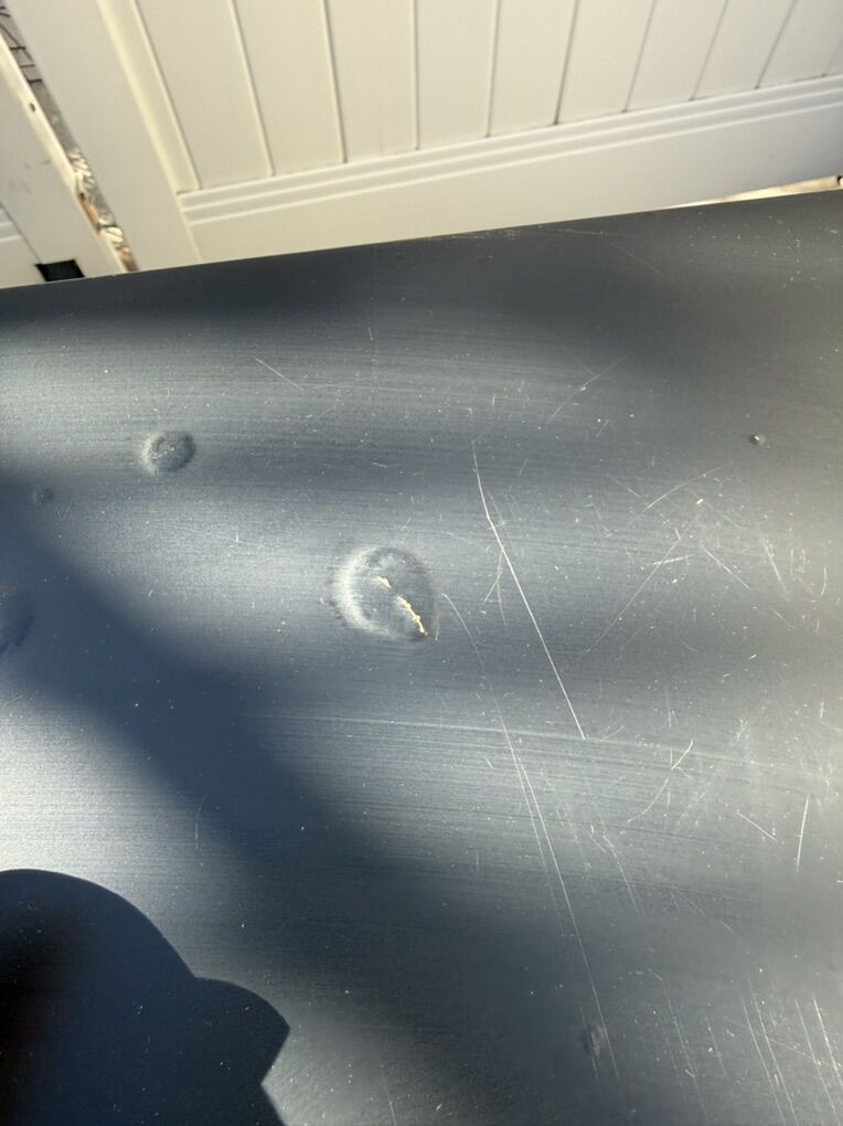 ApplePayUsed espresso bar/sideboard table. In overall good condition but there are imperfections from use and now being stored in my shop. Measurements are 16.5D 46.5 W 35.5 H.
