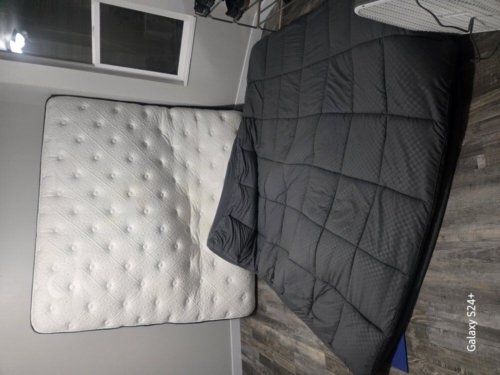 Venmosleigh style Ashley's king sized bed frame, mattress and mattress topper. all in good shape- the topper is 3 months old $200 or make an offer. Will trade for possibly pet food/litter
