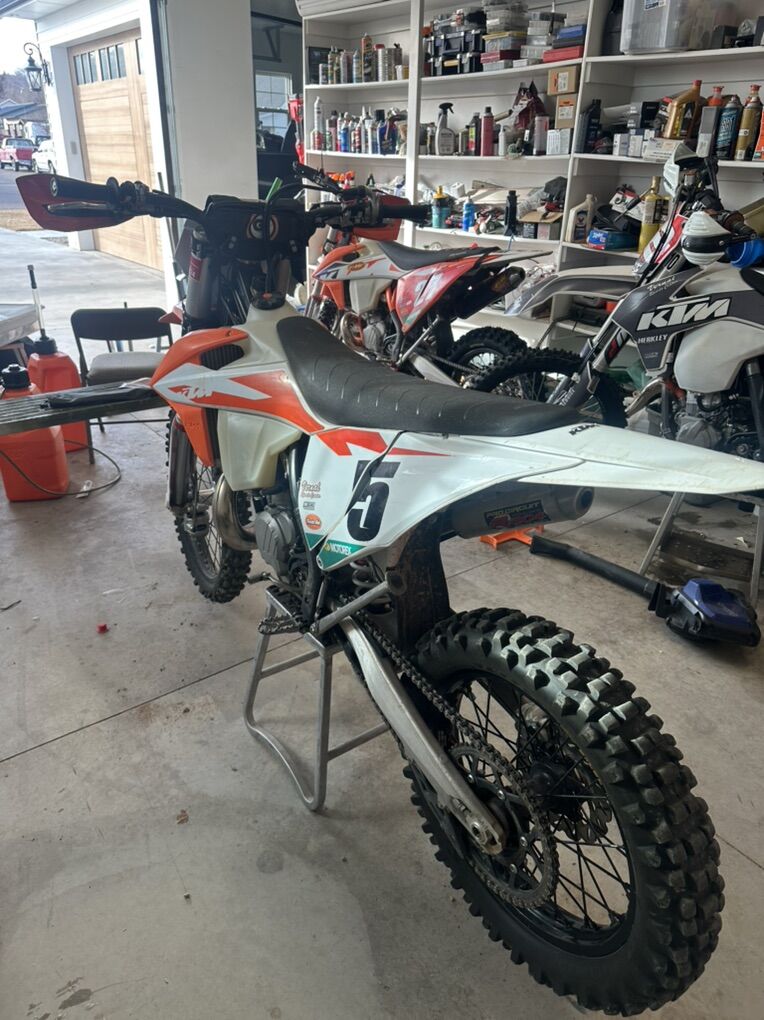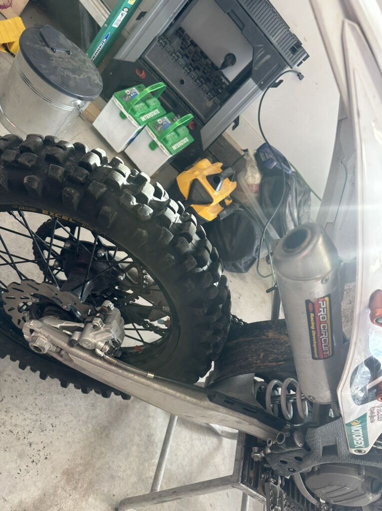 82 hours on it. Fly wheele weight 7oz. Pro circuit exhaust. Stock exhaust. Handle bar bag. Fresh rebuilt forks.