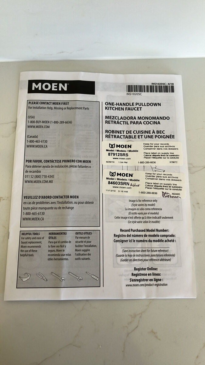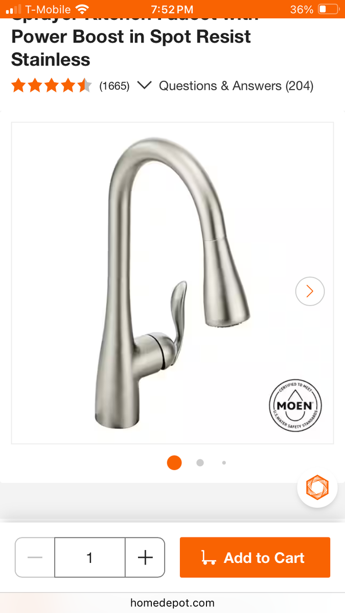 PayPalMoen Arbor kitchen faucet in like new condition. We remodeled and replaced our faucet we had recently put in. It’s spot resistant stainless color and single pull handle with power boost.