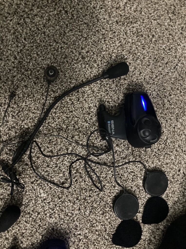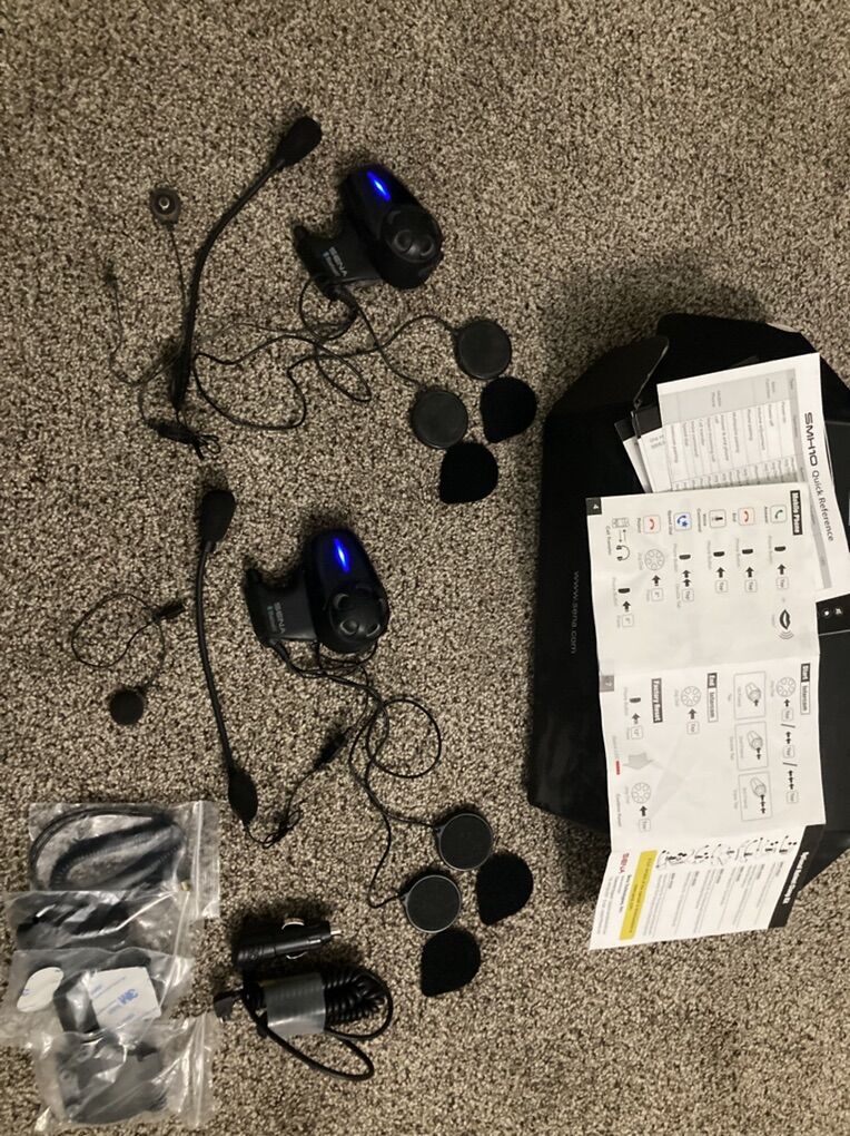 Used Sena SMH10 Bluetooth headset and intercom radios. Set of 2 radios Don’t use anymore. They are a little dusty, 1 if the small microphones has lost the foam covering. Come with extra mount pads for ear pieces and boom microphones that were never used.