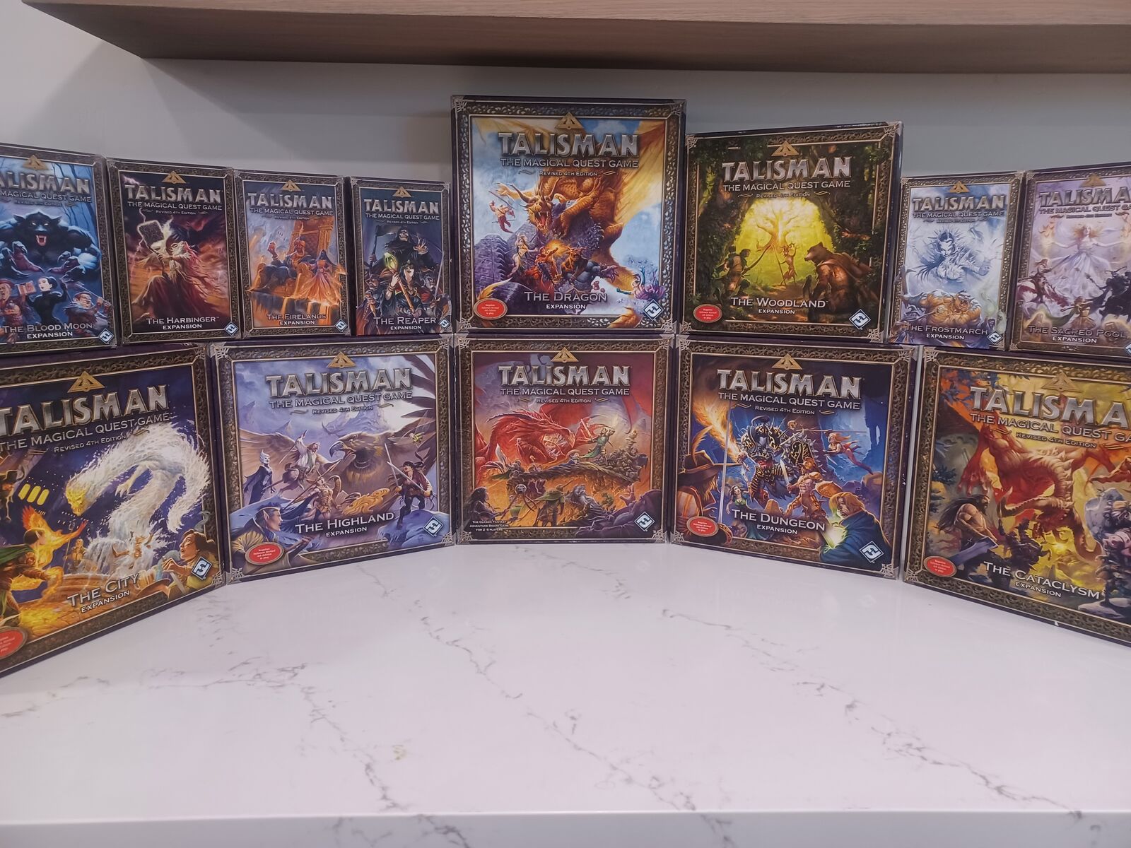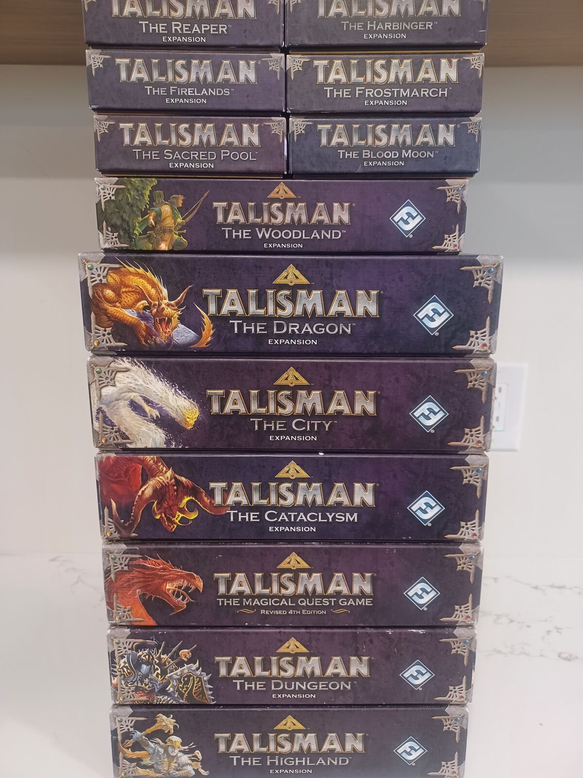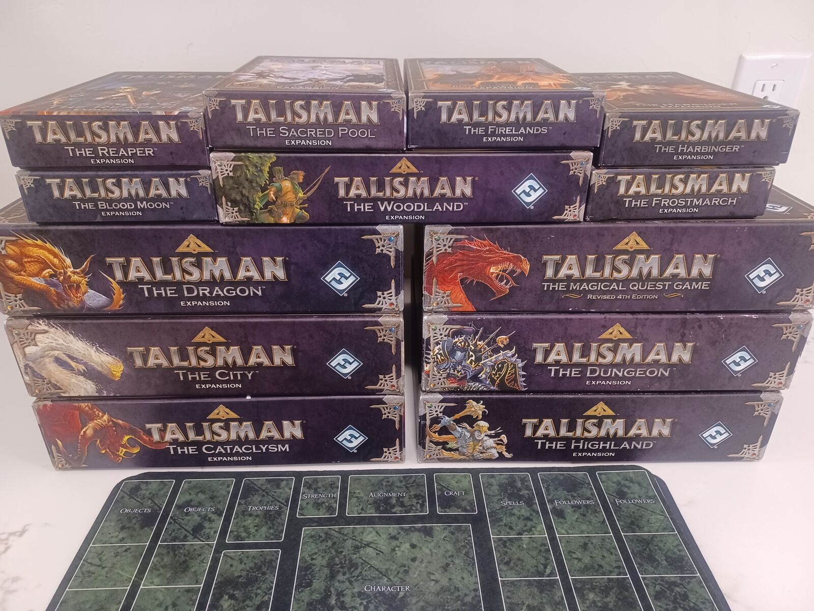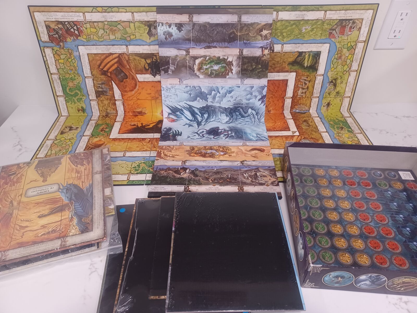 This is a complete master set - very rare! It includes everything released for the 4th edition from Fantasy flight, which in now out-of-print. The components (boxes, cards, tokens), except for the base game box, are in EXCELLENT condition because I only ever played the base game (the expansion boards are still sealed). I have personally owned this since I bought it a decade ago.