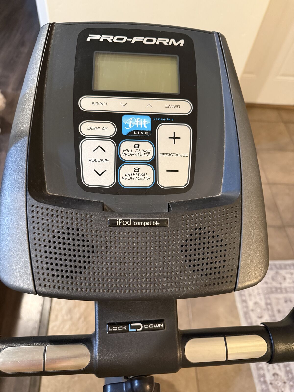 VenmoProForm 215 CSX exercise bike In excellent condition. It's older but barely used and still in perfect condition. Bonus, you can hook your iPod up to it! Power cord not pictured.