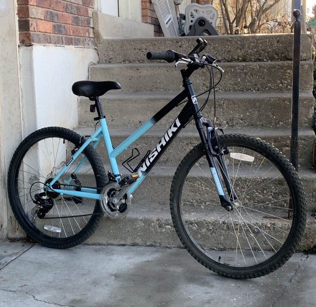 ZelleNishiki Pueblo 21spd Bike 21spd (3x7) Shimano gears Shimano Twist shifters 17” Med. Aluminum frame Aluminum wheels Waterbottle Holder QR adjustable seat Kickstand 26” x 2” terrain tires