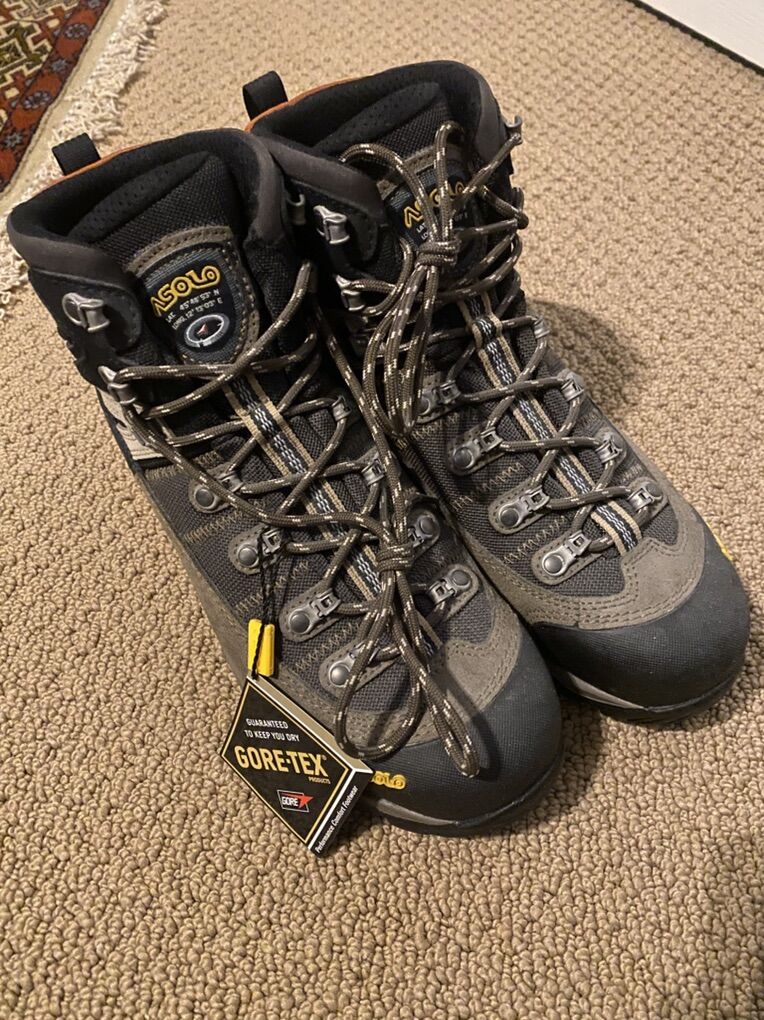 VenmoNew ASOLO Gore-Tex hiking boots. These boots are super durable and waterproof. Perfect for trails or just everyday wear. Has a cool grey and black color. No box.