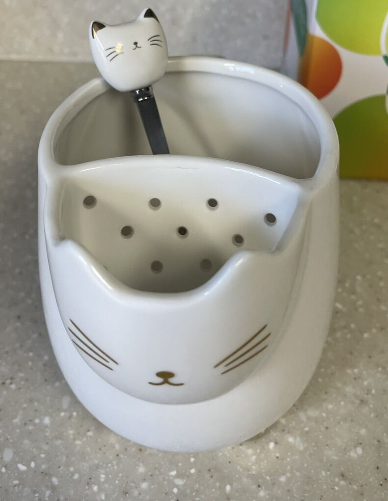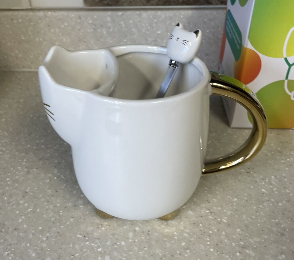 VenmoCute Cat Tea Mug with Spoon, Funny Gifts for Women Girls for cat lovers (White). New