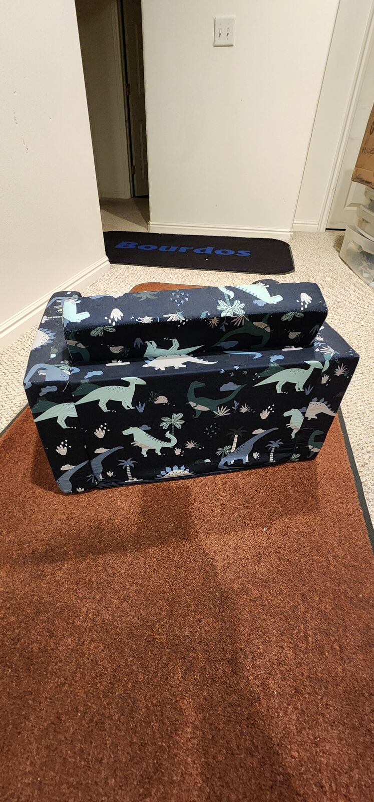 CashAppUlax Furniture kids' 2-in-1 convertible flip-open sofa chair in a navy dinosaur pattern.