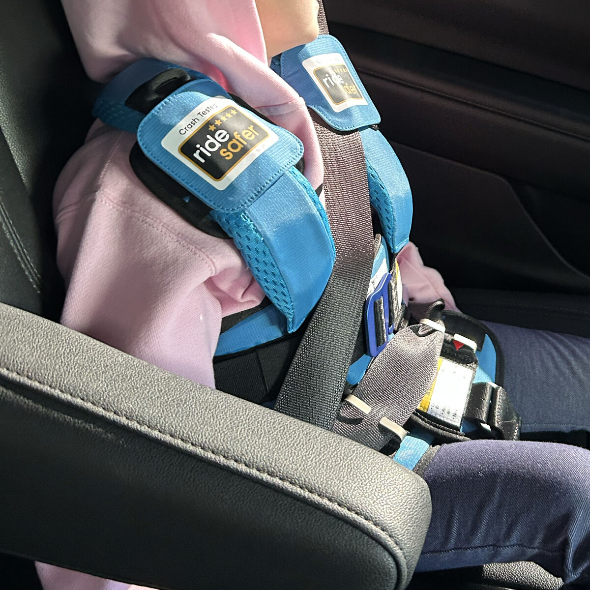 VenmoBought this brand new for a trip to California last week so we could avoid taking the big huge car seat for my daughter. This worked great and fits in its own little travel pack. If your family travels a lot, it would be perfect for you! Bought it off of Amazon, can send you the link for more info. It is a legal car seat in all 50 states, no rips, tears or accidents and takes seconds to get on. None of our Uber drivers batted an eye at this. My daughter didn’t mind the comfort of it, she hates all car seats.
