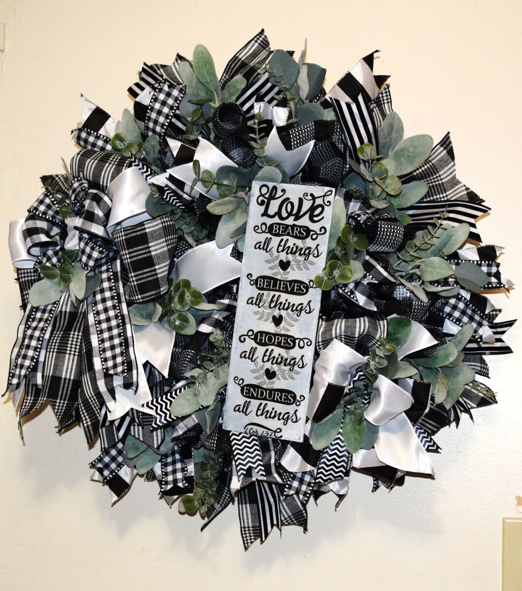 VenmoThis handmade wreath would be a beautiful way to welcome guests to your home! It is fairly large and full. Features lots of ribbon and a homemade sign and some pretty faux greenery.