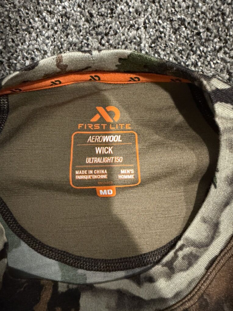 Brand new First Lite gear — never worn. I decided to go a different direction with my layering system, so this never made it into the field.