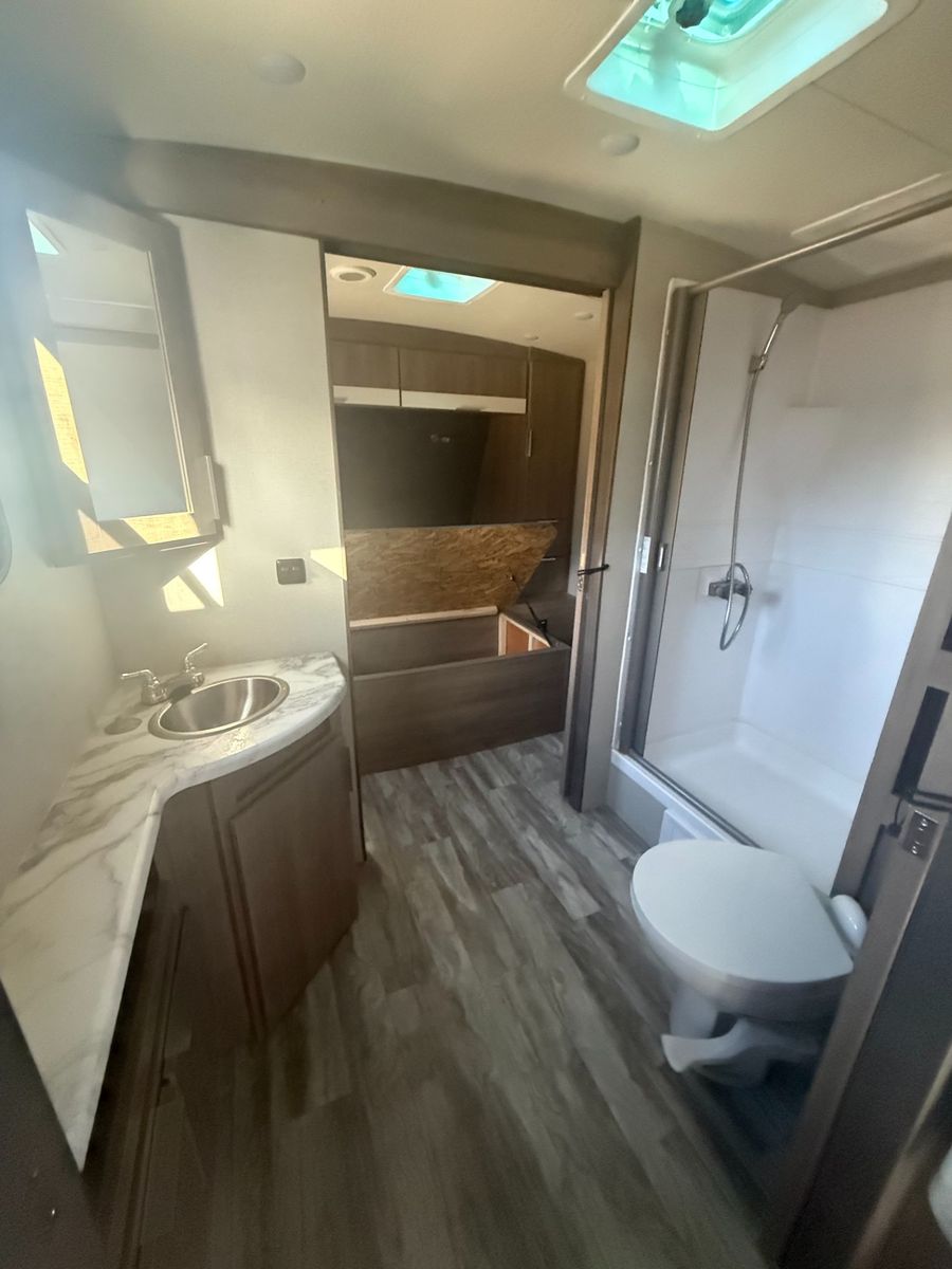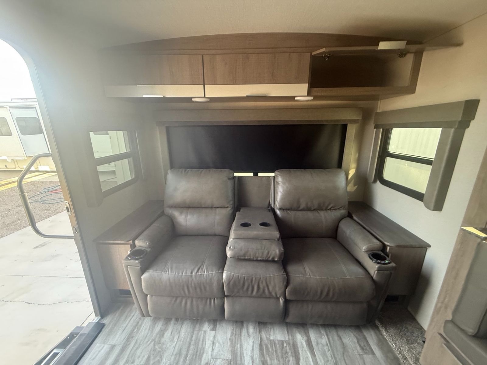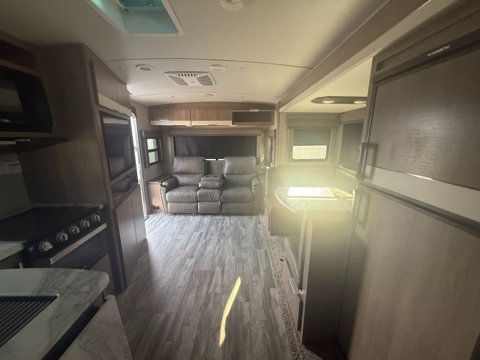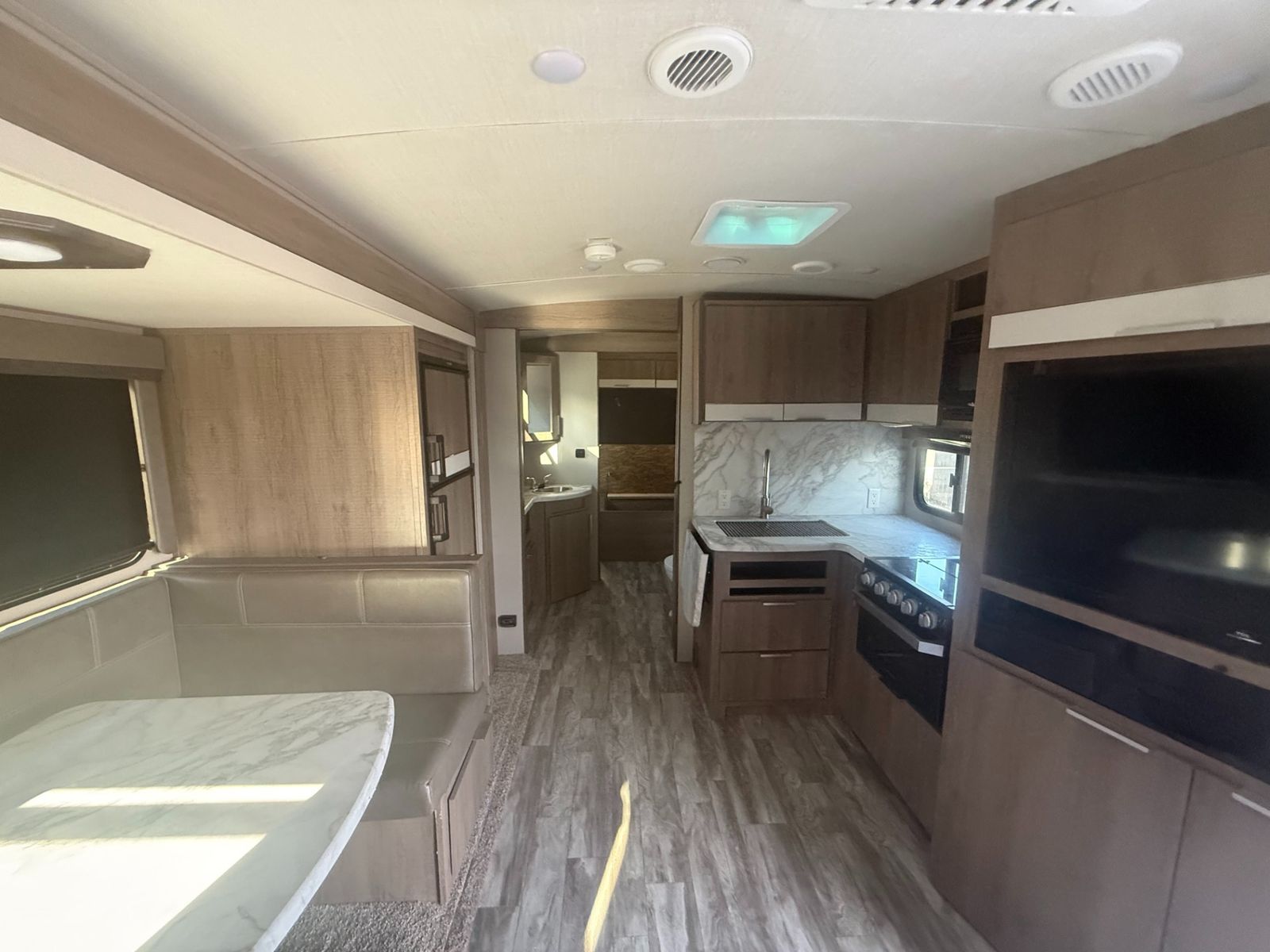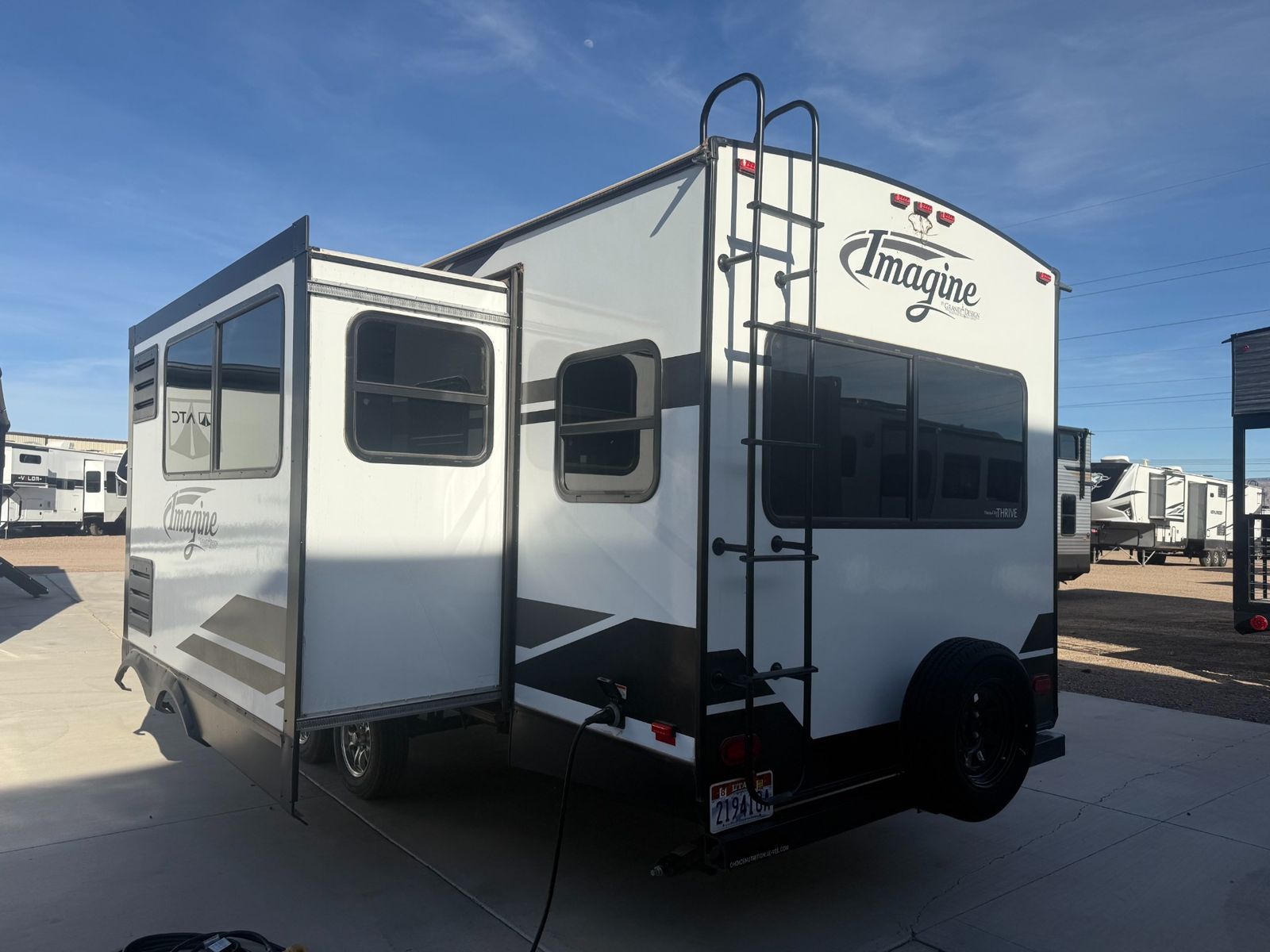 Grand Design Imagine travel trailer 2500RL highlights: Walk-Through Bath Dual Entry U-Shaped Dinette Removable Ottoman Solar Power Inlet Power Tongue Jack You and your spouse will love this trailer with its master suite in the front which includes the second exterior entry, and a space savings sliding interior door with quick access to the walk-through bathroom. You can dine at the U-shaped dinette with removable ottoman to relax your legs or choose the optional free standing dinette in its place. The rear tri-fold sofa gives you a place to unwind after hiking the trials or making dinner in the L-shaped kitchen which includes a counter extension for extra space to dry dishes or serve food. And the LED TV provides inside entertainment with a pantry behind it to hold all your snacks. With any Imagine by Grand Design the construction includes a laminated aluminum framed main floor, rear wall, side walls, roof and end walls in the slide rooms and floors, plus a one-piece roof membrane giving you years of lightweight towing to your favorite destinations. Best in class storage is found in the exclusive drop frameunobstructed pass through storage, and the Universal Docking station offers an all-in-one location for utilities and hookups, plus you will find industry leading tank capacities and extended season camping with the mandatory four-season protection package. Inside you will experience residential cabinetry and a pull-down sprayer kitchen faucet, upgraded residential furniture and countertops, plus much more with an 81" radius ceiling for a spacious interior. Choose your favorite Imagine today, and start adventuring in a lightweight and comfortable trailer!