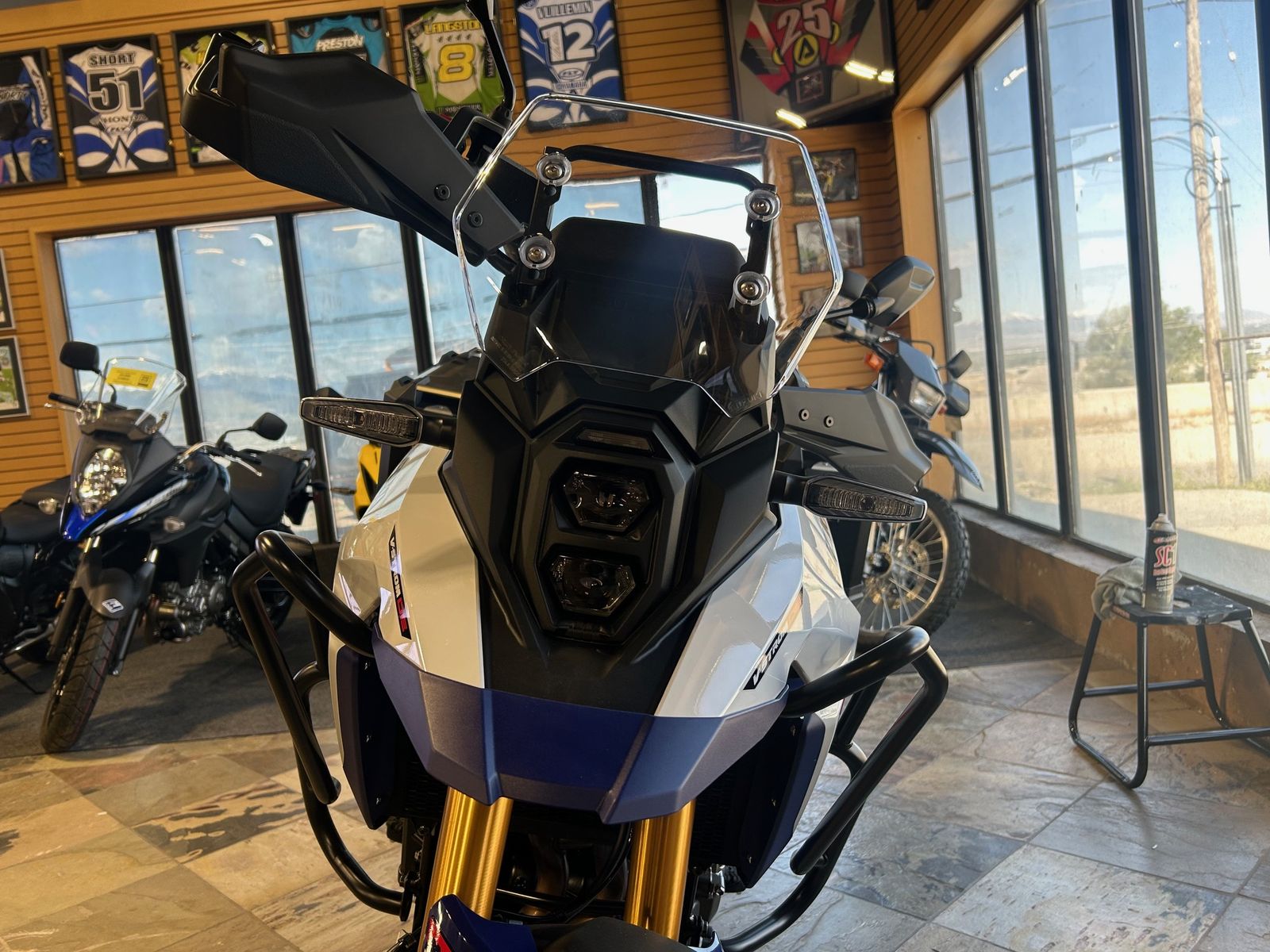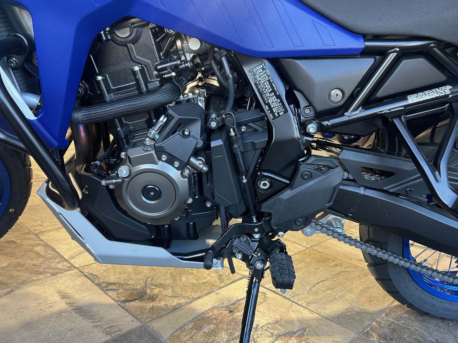 The illustrated vehicle may vary in selected details from the production models and some illustrations feature optional equipment available at additional cost. Manufacturer Suggested Retail Price (MSRP) does not include Pre-delivery Inspection (PDI), titles, licensing, registration fees, destination charges, added accessories and installation thereof. Engine Type: Parallel Twin Displacement: 47.3 cu. in. (776 cc) Bore and Stroke: Bore: 3.31 in. (84 mm); Stroke: 2.76 in. (70 mm) Cooling: Liquid Compression Ratio: 12.8:1 Fuel System: Gas Transmission: Manual Front Suspension: Inverted Fork Rear Suspension: Twin Sided Swing Arm Front Brakes: Dual Hydraulic Disc Rear Brakes: Hydraulic Disc Front Tire: Dunlop® TRAILMAX MIXTOUR 90/90 R21 M/C 54H Rear Tire: Dunlop® TRAILMAX MIXTOUR 150/70 R17 M/C 69H Wheelbase: 61.8 in. (1570 mm) Seat Height: 33.7 in. (855 mm) Rake: 28 Trail: 4.5 in. (114 mm) Fuel Capacity: 5.3 gal. (20 L) Speedometer: Standard Tachometer: Standard Odometer: Standard