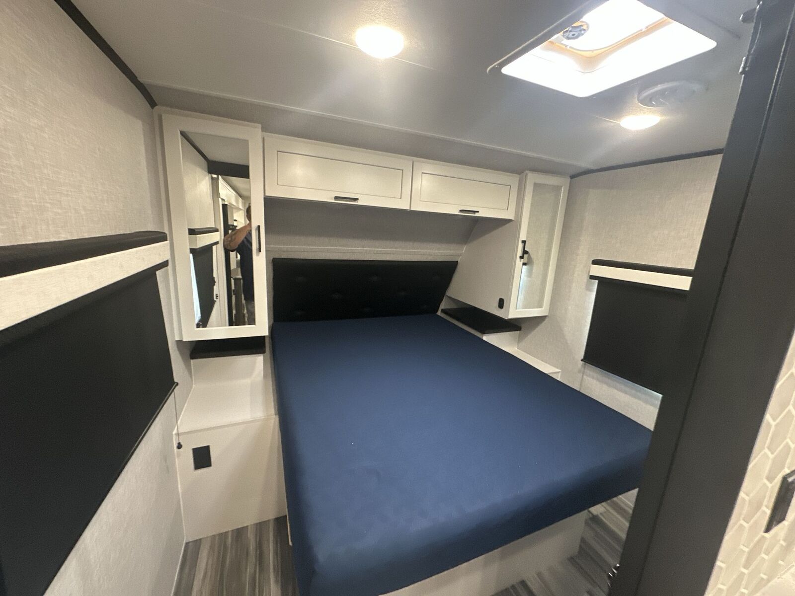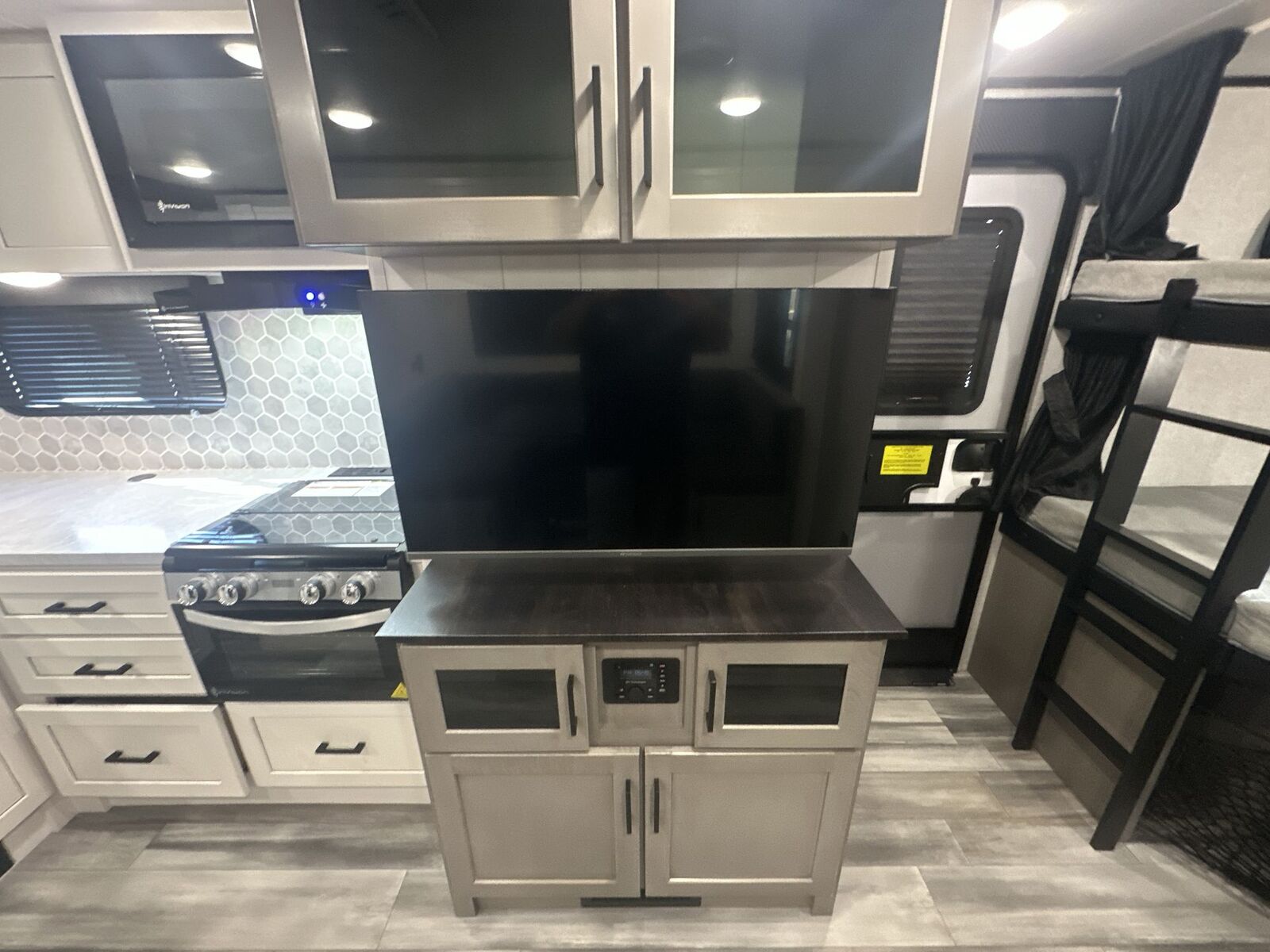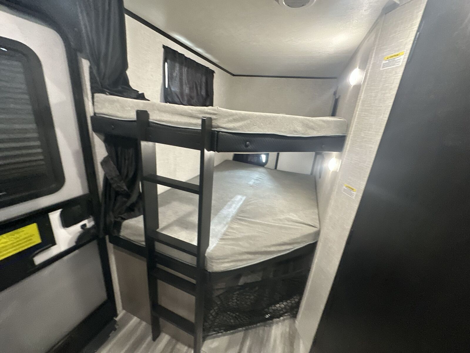 Jayco Jay Feather travel trailer 24BH highlights: Double-Size Bunks U-Shaped Dinette Outside Kitchen Cargo Door There is so much to love about this trailer from the double-size bunks in the rear with a ladder for easy access, plus the cargo door that allows you to stow larger items from the exterior to the interior underneath the bunks. You also have exterior storage compartments for outdoor gear. And the cook can choose to make meals using the outside kitchen including a refrigerator to store some cold items or the inside kitchen with full amenities including an 11 cu. ft. 12V refrigerator and ample counter space. The walk-in pantry is a nice feature as well especially when you have a big crew. There is a private bedroom up front witha queen bed and dual wardrobes for your things, and any other guests can sleep on the U-shaped dinette in the main living area! With any Jay Feather travel trailer by Jayco, you will enjoy lightweight towing, convenient exterior amenities, and at-home comforts inside! The Overlander 1 Solar Package included within the Jay Sport Package comes with a 200W solar panel and a 30-amp digital controller so you can enjoy some off-grid camping. There is also a modern graphics package with a dual-colored sidewall, LCI Solid Step fold-down aluminum tread steps on the main entry door, and Climate Shield 0 -100° F tested weather insulation package that will allow you to camp in all sorts of climates. The Customer Value Package will make time outdoors easier than ever with a power tongue jack and a Rock Solid stabilizer system. More exterior features include a Keyed-Alike locking system, marine grade exterior speakers, a Magnum Truss roof system, and the list goes on! And we haven't even touched on the interior comforts, like the residential style seamless countertops and vinyl flooring throughout, decorative backsplash, handcrafted hardwood door/drawer fronts, and multiple USB charging ports to keep you going!