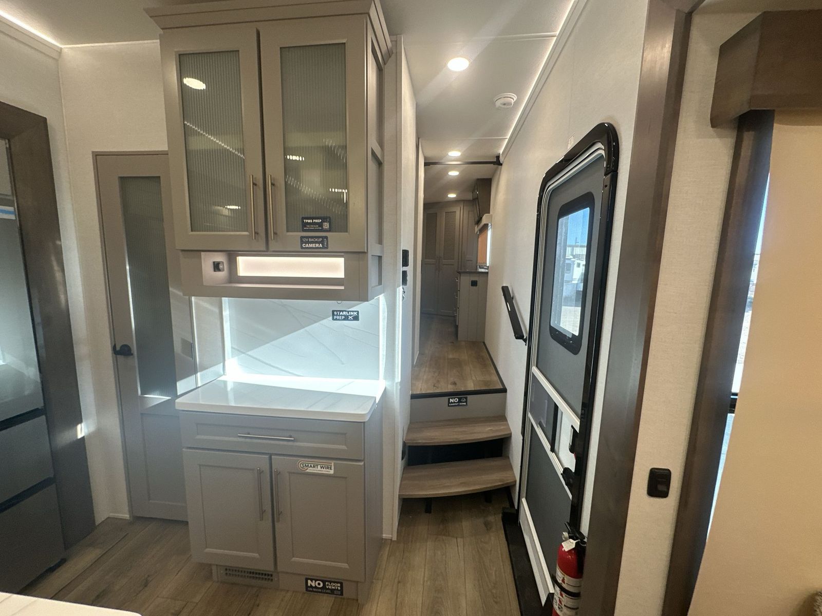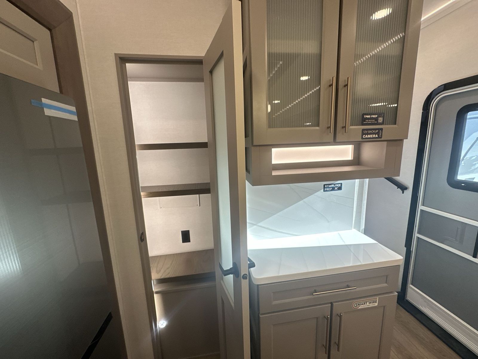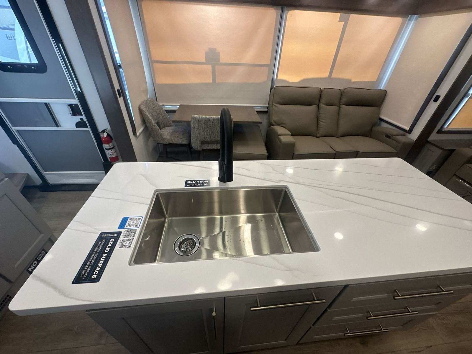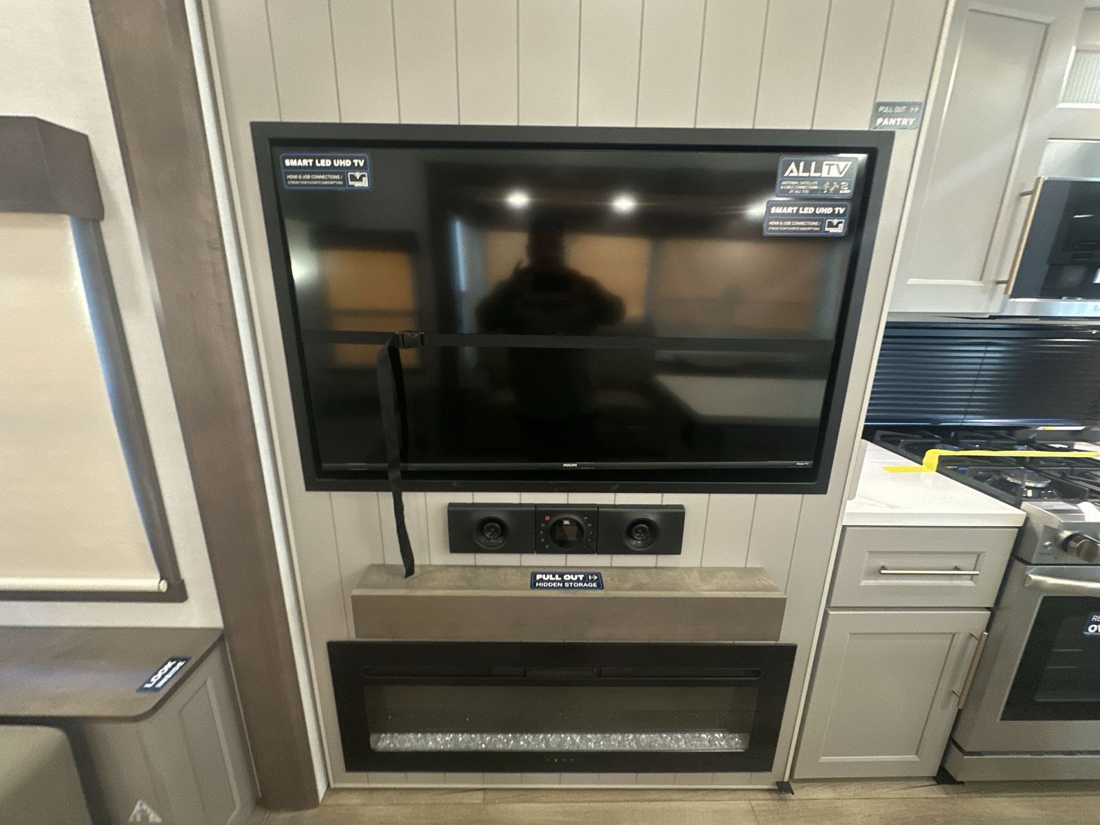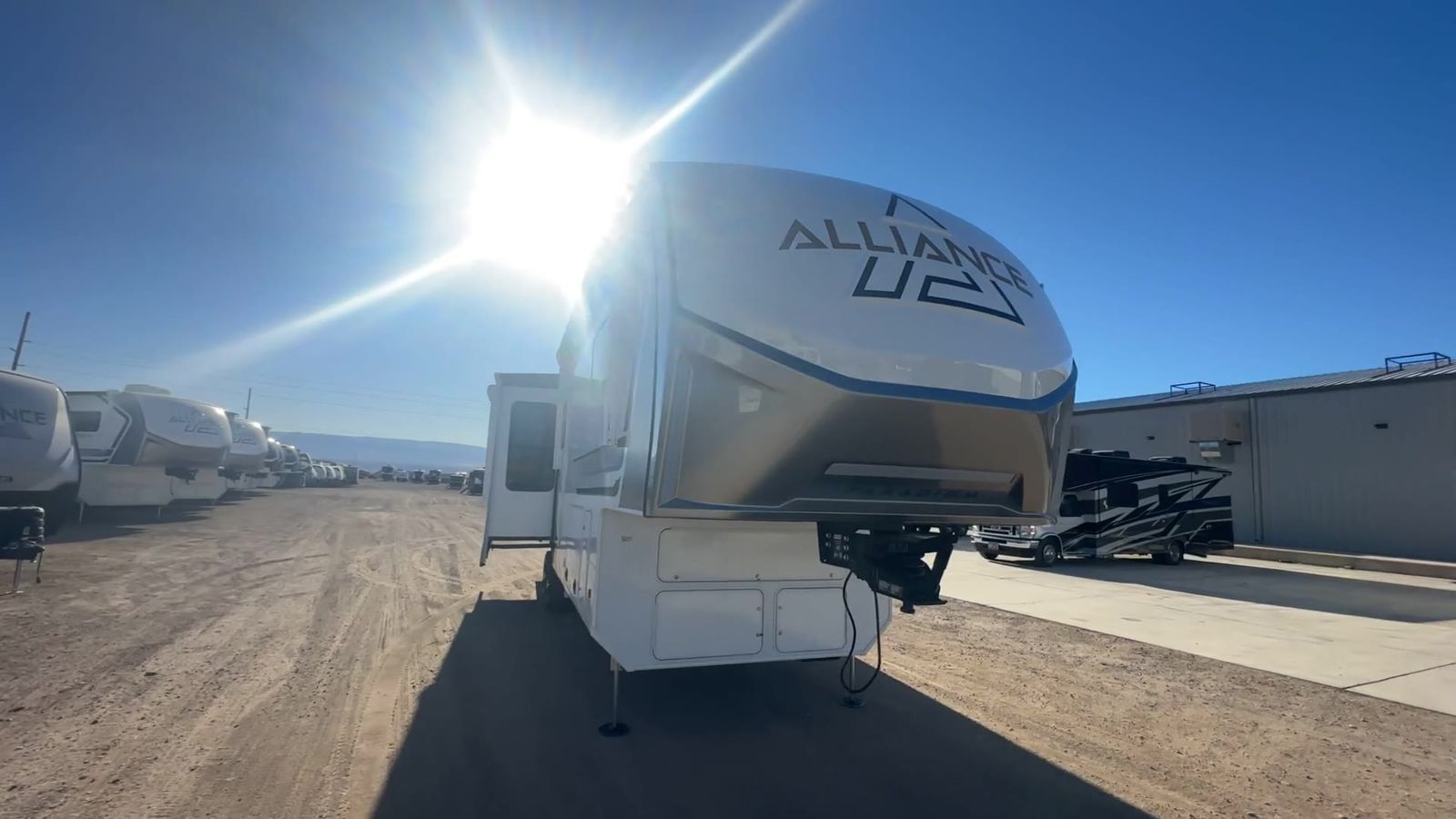 Alliance RV Paradigm fifth wheel 310RL highlights: Rear Living Area Kitchen Island Flush-Floor Kitchen Slide Swivel Table and Desk Hidden Pantry Behind Fireplace Search for the best views, the nicest RV park, or a place you haven't seen for years with this Paradigm in tow! There is a king bed slide in the master bedroom, a Smart TV, and a dresser with flip-up hidden storagefor your belongings. The full bathroom offers a large residential shower, a porcelain toilet with a soft close seat, and storage for your linens, while the kitchen gives you two pantries, an island with a large undermount single basinsink anddishwasher prep if you want the option for easy clean up.You will also have a residential microwave and range, plus a 3.73 cu. ft. oven to make meals. When you're ready to relax for the evening, head to the rear living area to enjoy the dual recliner love seat across from the 50" Smart TV and fireplace! The Paradigm fifth wheels by Alliance RV are functional, high-quality, and luxurious for an unforgettable camping experience. There arethree A/C unitsand a 40K BTU furnace to keep you comfortable year around, and you'll appreciate additional convenient amenities, like the all-in-one enclosed/heated utility center and the color coded and numbered wiring. AHelux Series coil spring pin boxcomes standard for hassle-free towing, along with Curt 8,000 lb. axles. You'll love the kitchen with itsLG solid surface countertopsand Lusso range, plus there is LED motion lighting in the pantry and a Maxx fan with a rain sensor to keep everything fresh when making dinner. Each model also includes anHD Smart TVin the living room and bedroom.And of course there are a variety of options you can choose from to further customize your fifth wheel; dual pane windows, Super Solar Plus, slide out awning toppers, and generator prep or a generator to name a few!