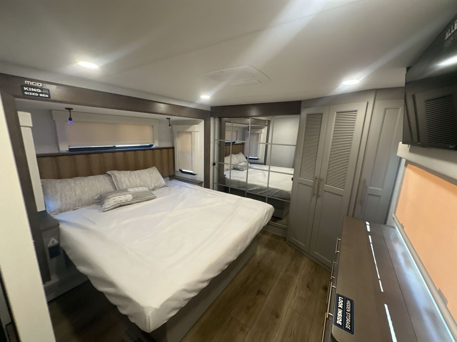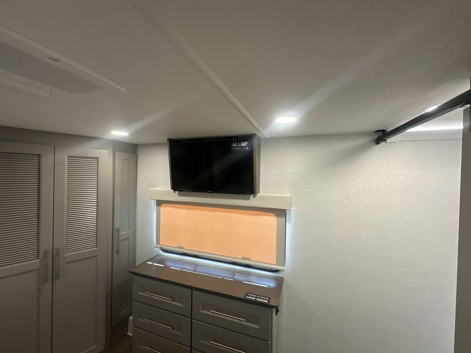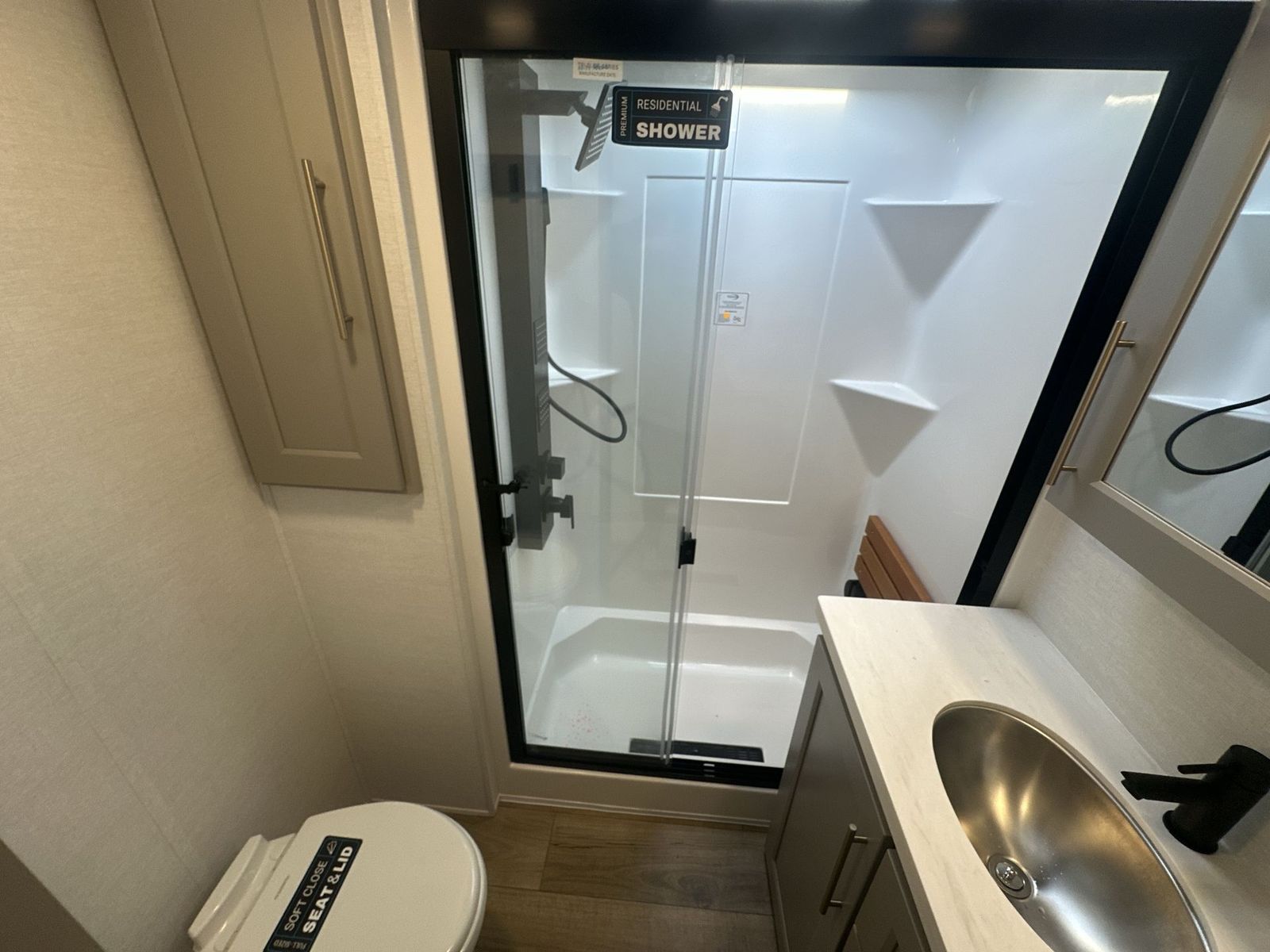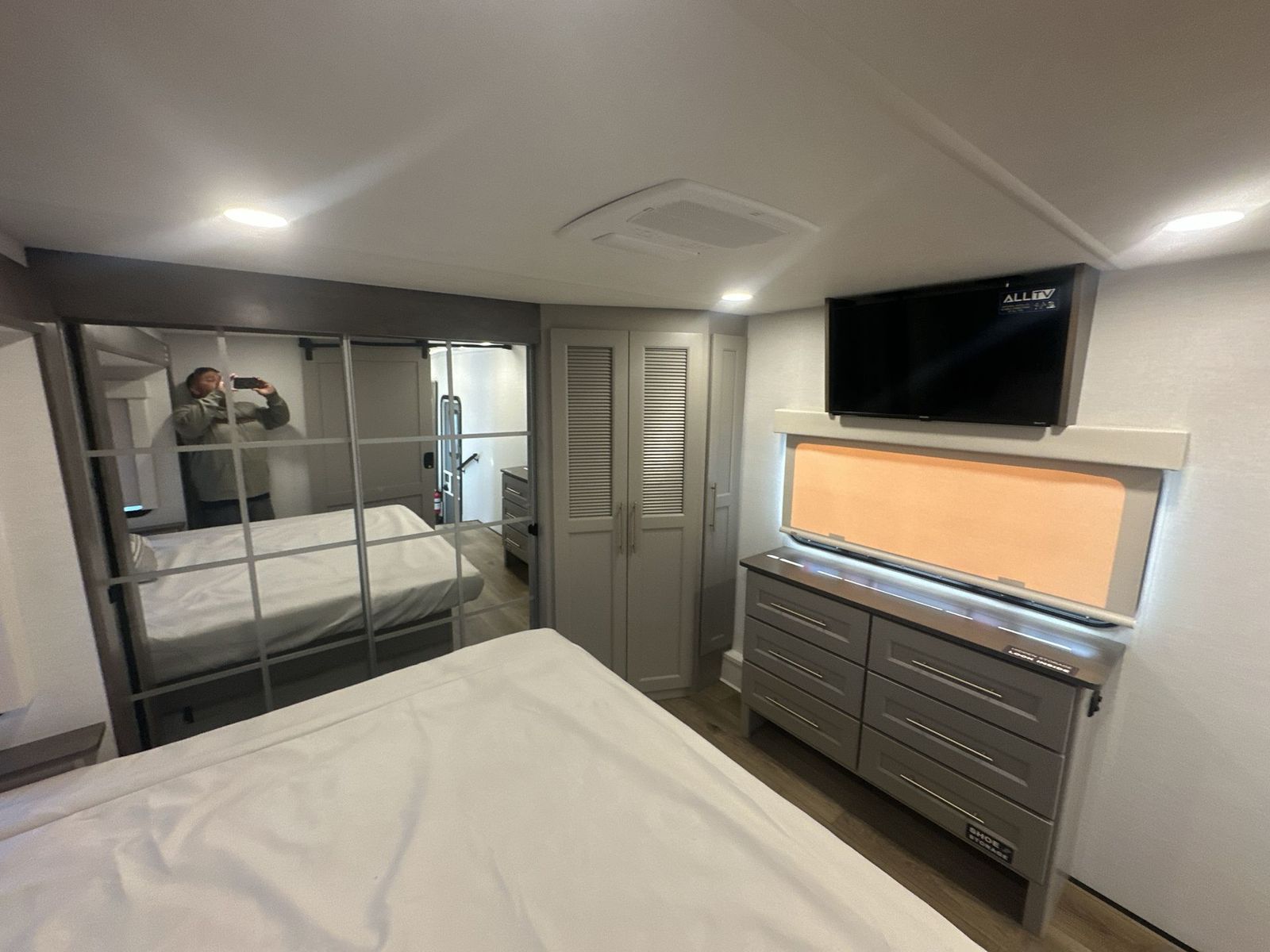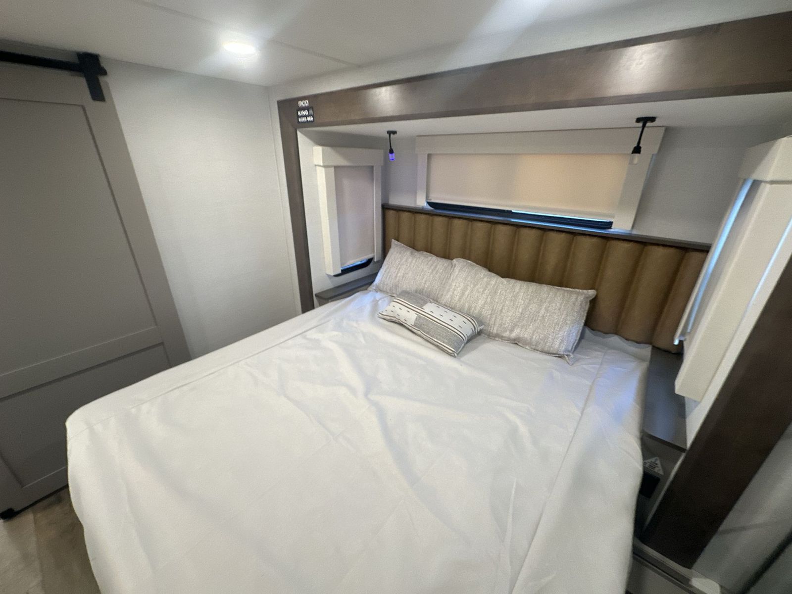 Alliance RV Paradigm fifth wheel 310RL highlights: Rear Living Area Kitchen Island Flush-Floor Kitchen Slide Swivel Table and Desk Hidden Pantry Behind Fireplace Search for the best views, the nicest RV park, or a place you haven't seen for years with this Paradigm in tow! There is a king bed slide in the master bedroom, a Smart TV, and a dresser with flip-up hidden storagefor your belongings. The full bathroom offers a large residential shower, a porcelain toilet with a soft close seat, and storage for your linens, while the kitchen gives you two pantries, an island with a large undermount single basinsink anddishwasher prep if you want the option for easy clean up.You will also have a residential microwave and range, plus a 3.73 cu. ft. oven to make meals. When you're ready to relax for the evening, head to the rear living area to enjoy the dual recliner love seat across from the 50" Smart TV and fireplace! The Paradigm fifth wheels by Alliance RV are functional, high-quality, and luxurious for an unforgettable camping experience. There arethree A/C unitsand a 40K BTU furnace to keep you comfortable year around, and you'll appreciate additional convenient amenities, like the all-in-one enclosed/heated utility center and the color coded and numbered wiring. AHelux Series coil spring pin boxcomes standard for hassle-free towing, along with Curt 8,000 lb. axles. You'll love the kitchen with itsLG solid surface countertopsand Lusso range, plus there is LED motion lighting in the pantry and a Maxx fan with a rain sensor to keep everything fresh when making dinner. Each model also includes anHD Smart TVin the living room and bedroom.And of course there are a variety of options you can choose from to further customize your fifth wheel; dual pane windows, Super Solar Plus, slide out awning toppers, and generator prep or a generator to name a few!