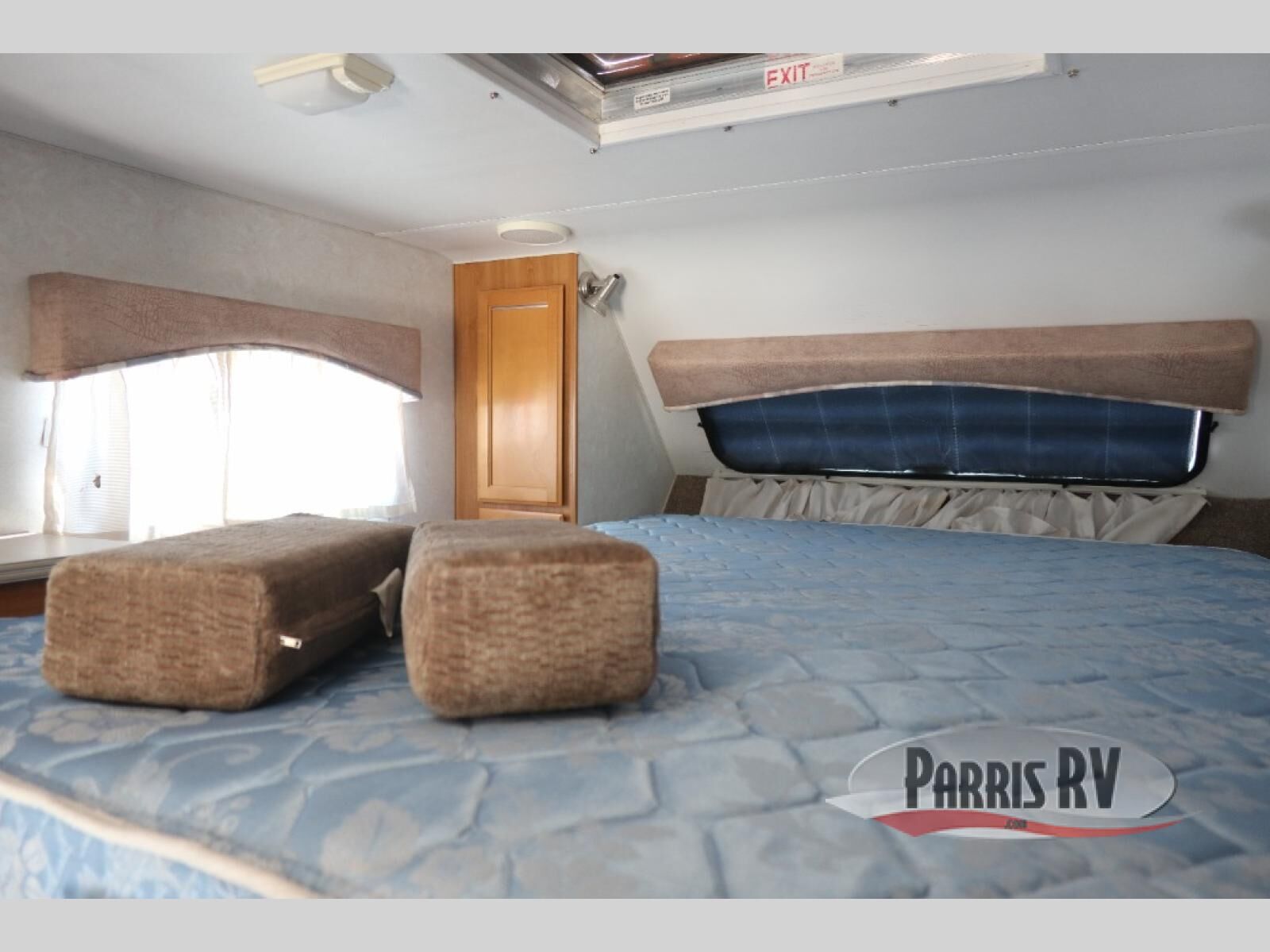 Rear Bathroom, Rear Living, Full Kitchen, Refrigerator, 2 Burner Range, Kitchen Sink, Overcab Bedroom, Queen Bed, and Much More.
